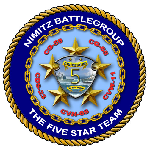 55k | Carrier Strike Group (CSG) 11; USS Nimitz (CVN-68); Commander Destroyer Squadron (CDS) 23; Carrier Air Wing (CVW) 11: HS-6 "Indians," VFA-86 "Sidewinders," VRC-30 "Providers" Det. 3, VAQ-135 "Black Ravens," VFA-41 "Black Aces," VFA-14 "Tophatters," VFA-97 "Warhawks," VAW-117 "Wallbangers." Operation Enduring Freedom, WestPac 2009–2010 (31 July 2009–26 March 2010). |