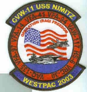 19k | CVW-11 USS Nimitz, VAQ-135 VFA-97 VFA-14 VFA-41 VFA-94 VAW-117 HS-6 VRC-30, Operation Iraqi Freedom, WestPac 2003 [3 March–5 November]. |