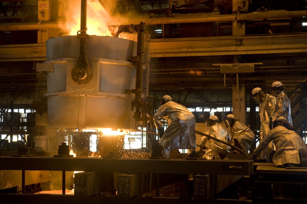158k | The foundry's furnace reached temperatures up to 3,000 degrees Fahrenheit and melted the steel for Gerald R. Ford's (CVN-78) struts in about six hours. A strut is a cast structure that is welded into the hull to support the ship's shafting and propellers. Photo by Chris Oxley (# DCS09-668-177). |
