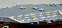 110k | Artist’s concept of CVN-21 one of a new class of aircraft carriers. A new nuclear propulsion plant will power the next class of aircraft carriers. The new plant will require fewer operators thereby lowering life-cycle costs, and will provide increased electrical power that will be available for the demands of developing technology. Smart sensors will assist in further reducing Navy watch standing requirements and in automating damage control functions such as detecting fire and flooding situations. Flight deck redesign and a transition to an advanced aircraft recovery system (AARS) will reduce crew workload, enhance safety and reduce the costs of operating and maintaining a carrier throughout her planed 50-year life cycle. U.S. Navy graphic (# 030606-N-0000X-001), June 6, 2003. Note: At the 2003 Navy League show Newport News displayed a model of a new carrier with four catapults and three, rather than four, elevators the island being moved aft. The large, redesigned deck makes it easier to handle aircraft. When combined with the newer, more powerful and faster elevators and catapults, it is claimed that the number of sorties per day can be significantly increased. |