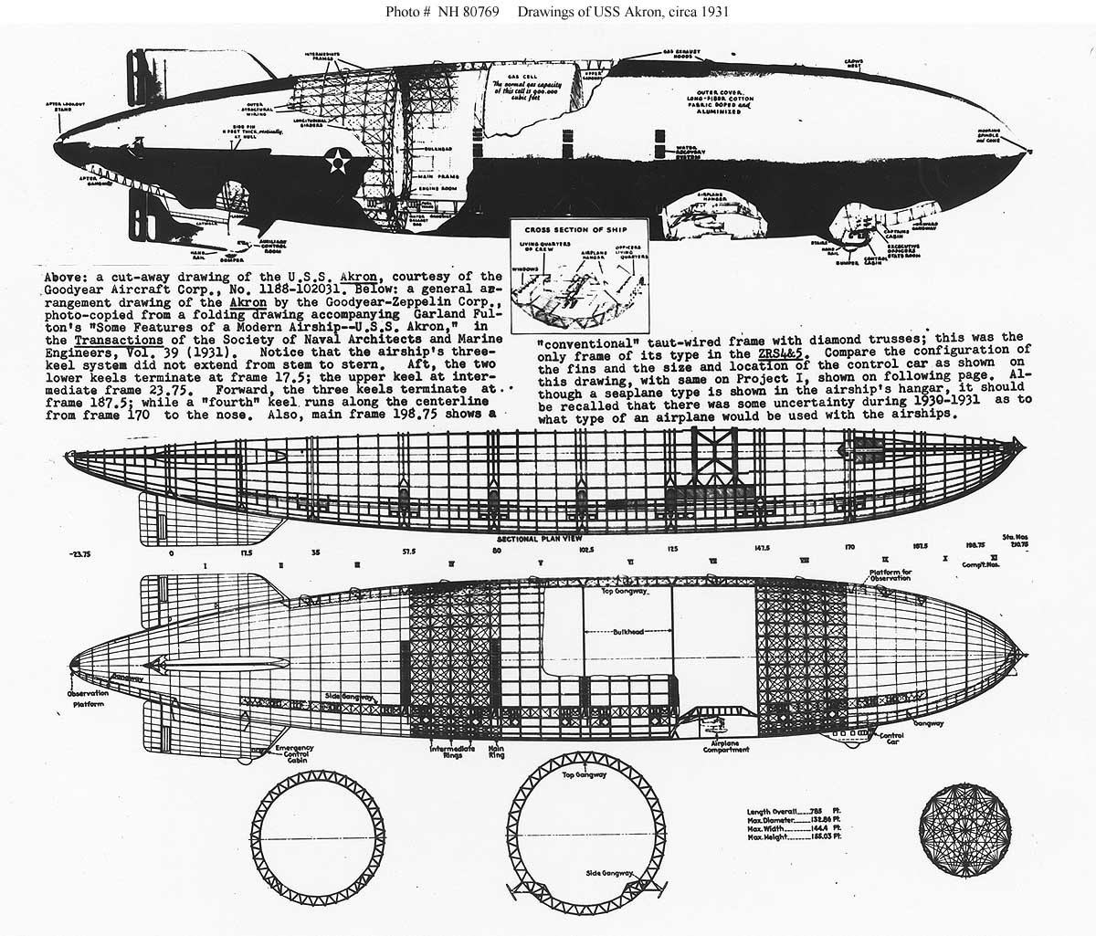 244k | USS Akron (ZRS-4), cutaway and interior structural drawings, circa 1931. Courtesy of Richard K. Smith, author of the book The Airships Akron & Macon, 1974. U.S. Naval History & Heritage Command photograph (# NH 80769). |
