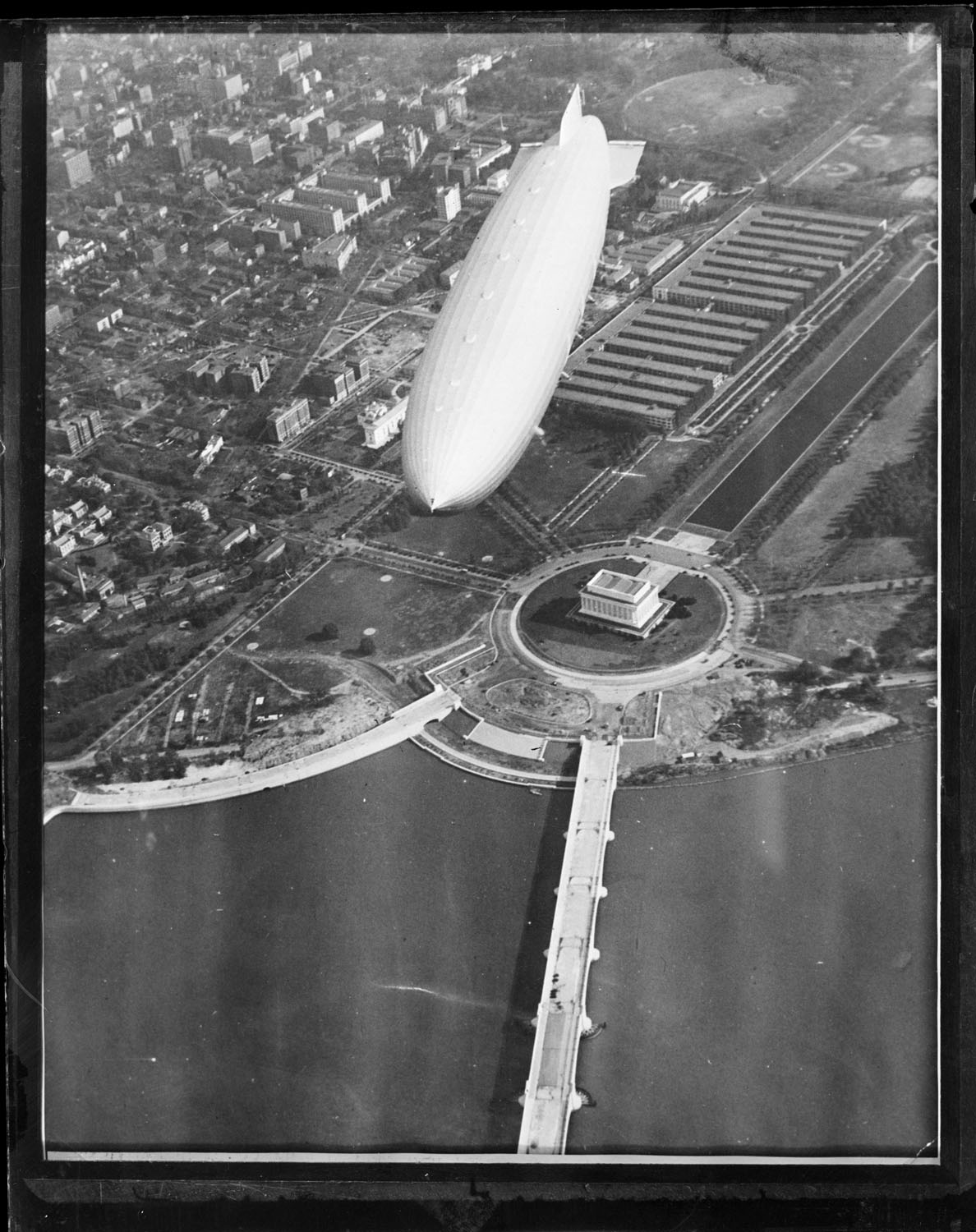 280k | Airship USS Akron (ZRS-4) flying over Lincoln Memorial, Washington, D.C., 2 November 1931. Photo by ©Leslie Jones, photographer (1886–1967). |