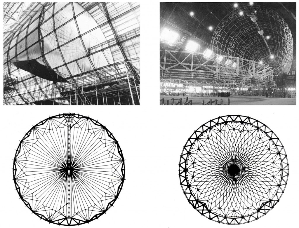 112k | Erecting the first main frame ring of the future USS Akron (ZRS-4), during her construction in the Goodyear-Zeppelin Corporation hangar at Akron, Ohio, 24 March 1930. U.S. Naval History & Heritage Command photograph (# NH 43121). |