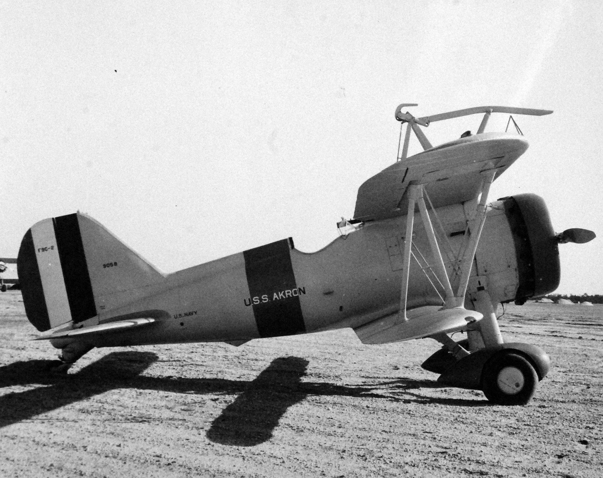 621k | Curtiss F9C-2 Sparrowhawk from USS Akron (ZRS-4), #9058, photographed at Naval Air Station, Lakehurst, New Jersey, 23 November 1932. U.S. Navy photograph, now in the collections of the National Archives and Records Administration (NARA), # 80-HAN-47-2. |