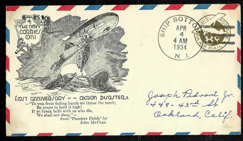 109k | "First Anniversary — Akron Disaster" "To you from failing hands we throw the torch; Ship Bottom, N.J., dated 4 April 1934. |
