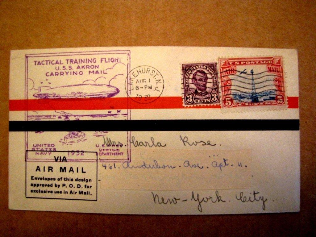 135k | Tactical Training Flight, U.S.S. Akron, Carrying Mail, United States Navy, U.S. Post Office Department, canceled 1 August 1932. |