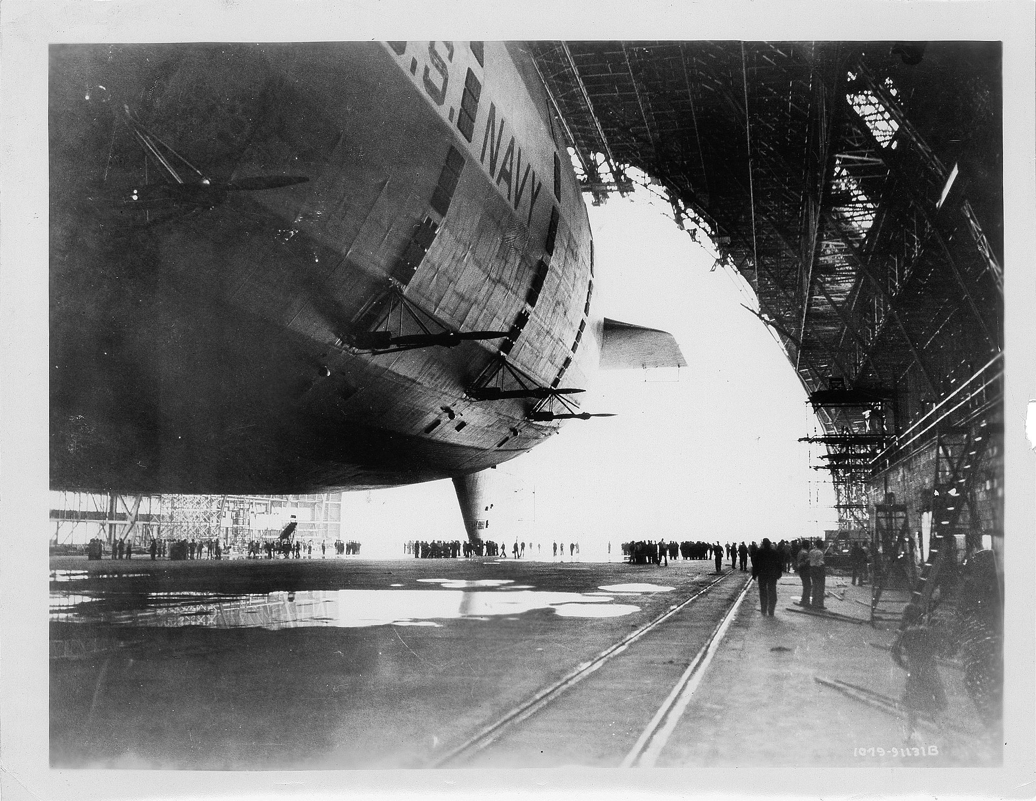 750k | Photograph of USS Akron (ZRS-4) in the Goodyear-Zeppelin Dock, c.1933. National Archives and Records Administration (NARA), Entry ID: NWL-16051. |