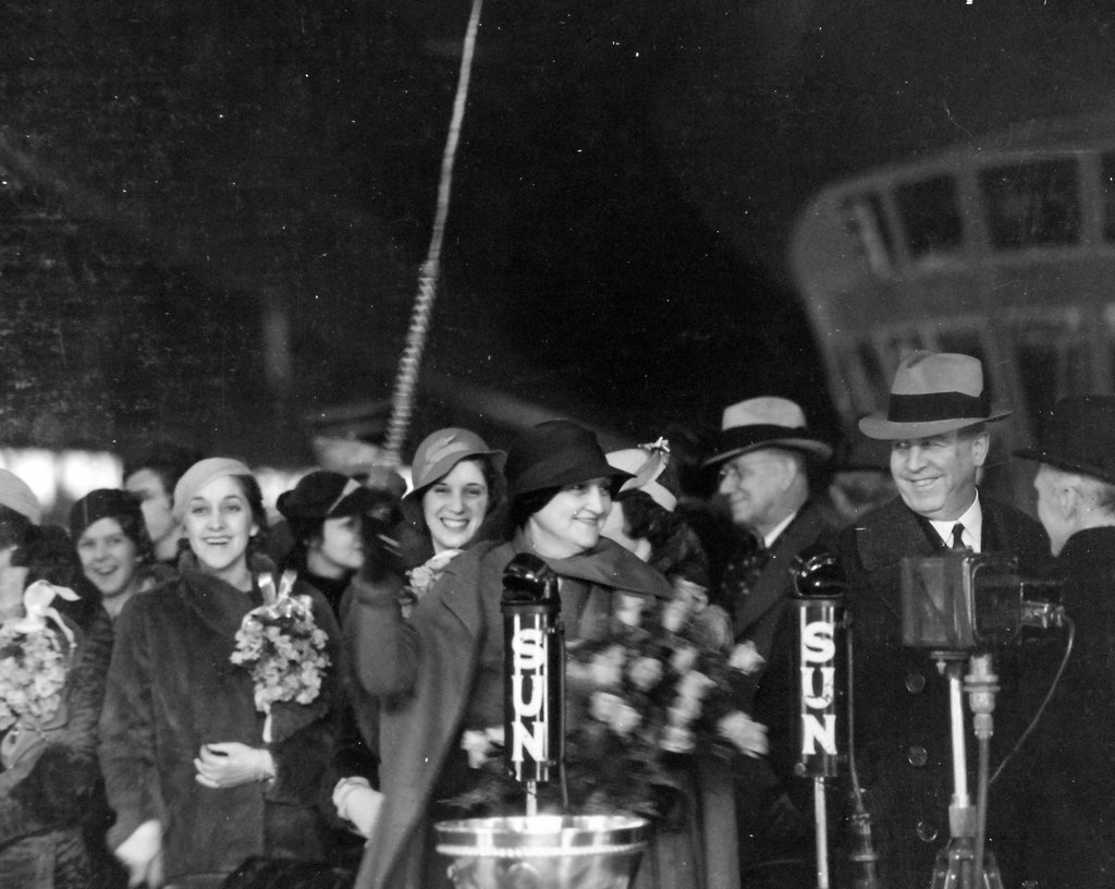 1.59M | "Mrs. Moffett Keeps Up Family Flying Tradition—Mrs. William A. Moffett, widow of Admiral W. A. Moffett, shown as she recently christened the Macon, sister ship of the lost Akron." "Widow of Rear Admiral Who Died on Akron on Air Trip to West—By Times Special—CHICAGO, April 28.—Mrs. William A. Moffett, undeterred from flying by the death of her husband, Rear Admiral Moffett, in the Akron disaster, stopped here Thursday on an air trip from Washington to Los Angeles." "Mrs. Moffett was amazed that she could be considered daring for continuing to fly." "'We all fly,' she declared, 'My sons, William and Lieutenant George Moffett, are naval aviators. My daughter, Mrs. Janet Moffett Moore, is a pilot, married to the executive director of the air lines between Los Angeles and Catalina Island.'" "'My other two sons, Charles, 17, and Beverly, 14, flew from Washington to the Pacific coast Tuesday. It's a family tradition, I guess.'" "Mrs. Moffett will be joined by her sons and daughters when she reaches Los Angeles." The Indianapolis Times, Friday, 28 April 1933. |