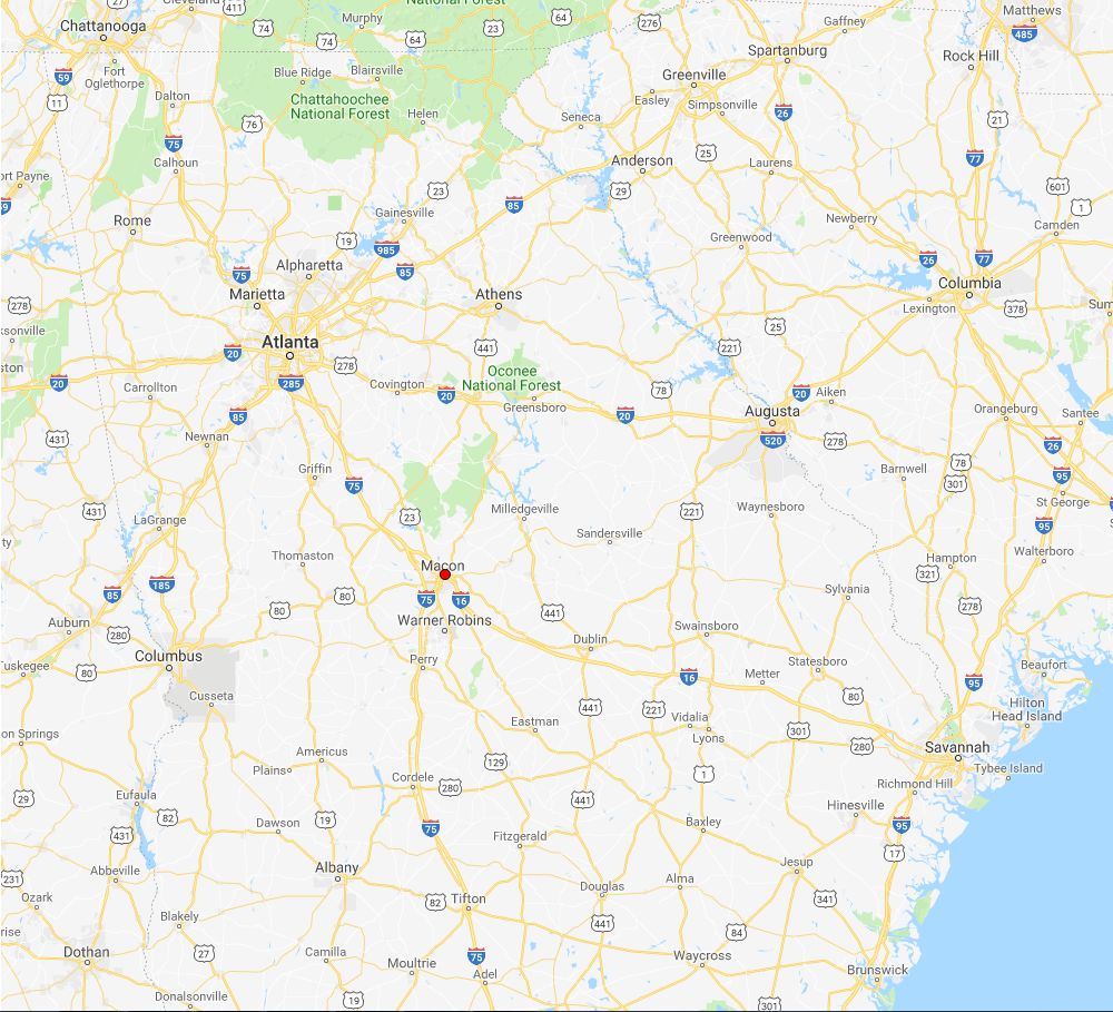 170k | ZRS-5 was named to honor the city of Macon, Bibb County, central Georgia. The city is named for Gen. Nathaniel Macon, U.S. Senator from North Carolina, 13 December 1815 to 14 November 1828, during the Era of Good Feeling. Macon was the biggest city in the Georgia congressional district of Representative Carl Vinson, then chairman of the House Naval Affairs Committee and supporter of rigid airship development. A Confederate sternwheel gunboat had previously borne the name. (Map courtesy of HamsterMap.com.) |