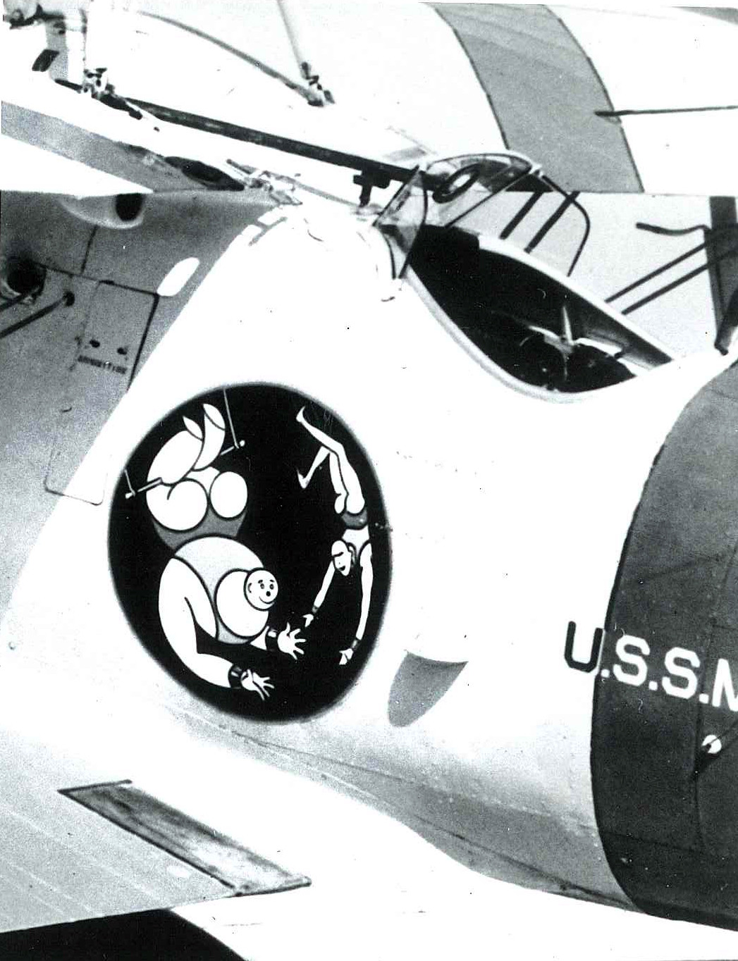 215k | An F-9C Sparrowhawk aircraft being prepared for exhibit in the Navy Memorial Museum (now National Museum of the U.S. Navy). Building 76, Washington Navy Yard, 1975. Note the insignia of the airship USS Macon (ZRS-5). National Museum of the U.S. Navy (NMUSN) Photograph Collection, # NMUSN-5157. |