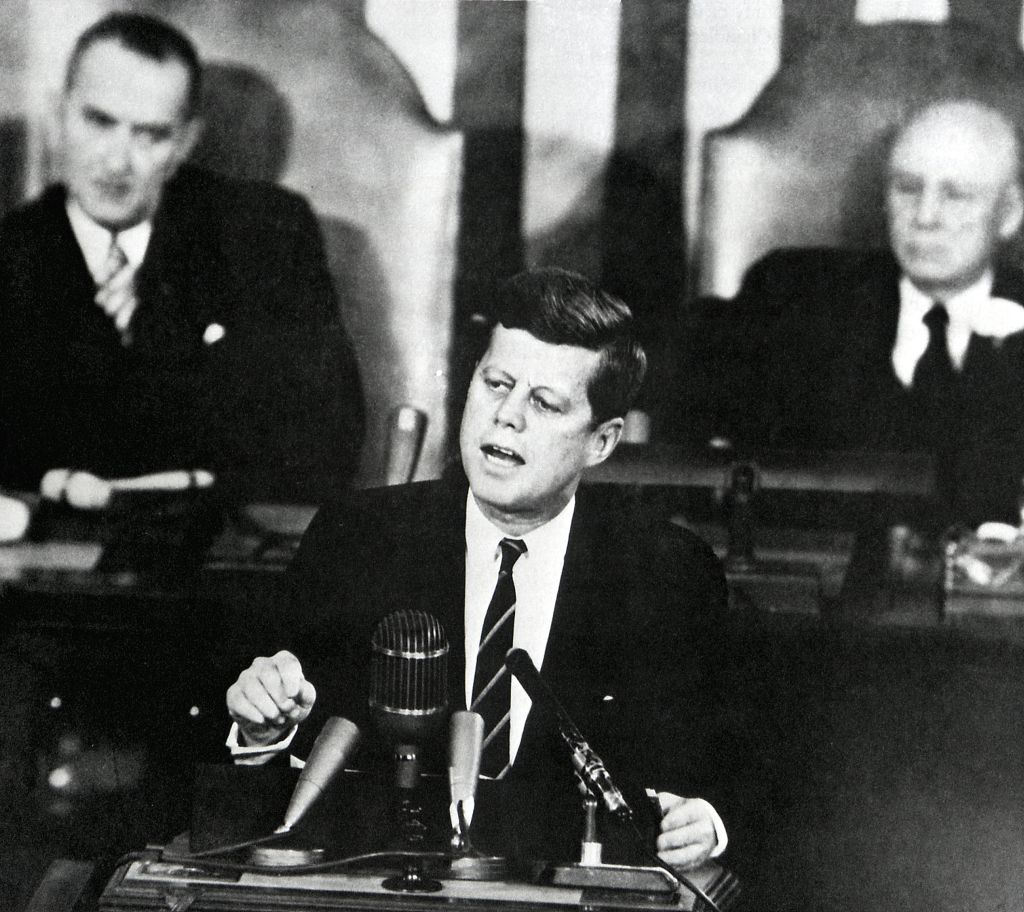 156k | During an address to Congress in May 1961, President John F. Kennedy declared the nation should commit itself to landing a man on the moon, and returning him safely to the earth, before the end of the decade. Clearly, it was a challenge to the Soviet Union for world leadership in the science and technology fields. "First, I believe that this nation should commit itself to achieving the goal, before this decade is out, of landing a man on the moon and returning him safely to the earth. No single space project in this period will be more impressive to mankind, or more important for the long-range exploration of space; and none will be so difficult or expensive to accomplish." NS-ha-001a: Video clip, 41" length (.mp4 format). NS-ha-001b: Page 9 of President Kennedy's Special Message to the Congress on Urgent National Needs, 25 May 1961. |