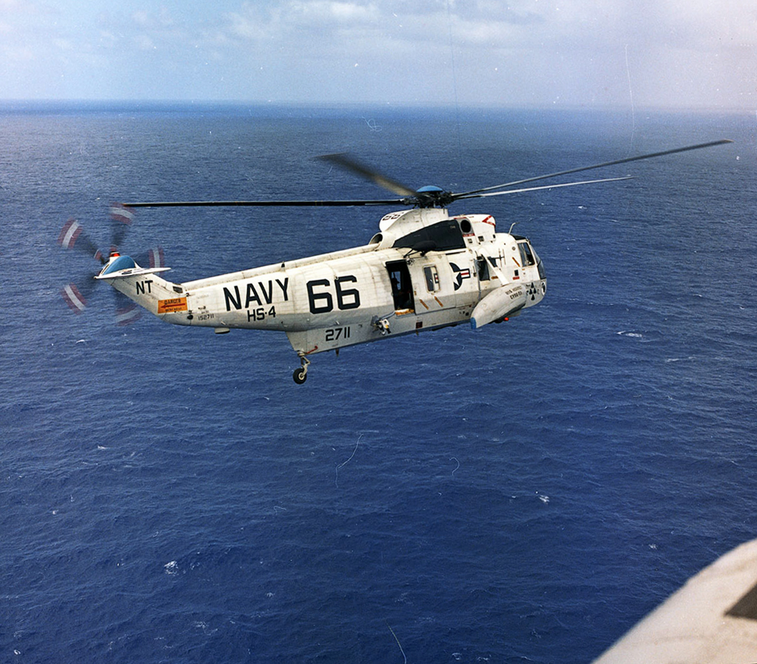 637k | SH-3D Sea Kings BuNo 154113 (modex NT315) and BuNo 152711 (NT66), Helicopter Anti-Submarine Squadron (HS) 4, Carrier Anti-Submarine Air Group (CVSG) 59, USS Hornet (CVS-12). |