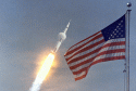 231k | Apollo 11 after pitchover. Note the condensation cloud that has formed in air expanding aft of the first-stage/second-stage transition. National Aeronautics and Space Administration (NASA) photo, # KSC-69PC-397. |