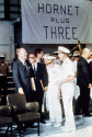 51k | USS Hornet (CVS-12) with the banner "Three More Like Before." |