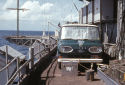 162k | ABC had two mobile semi-trailers with tons of video recording and editing equipment in them (along with cameras, etc.). They were redundant, in case one had a problem. This photo shows one of them being loaded aboard at Long Beach. |