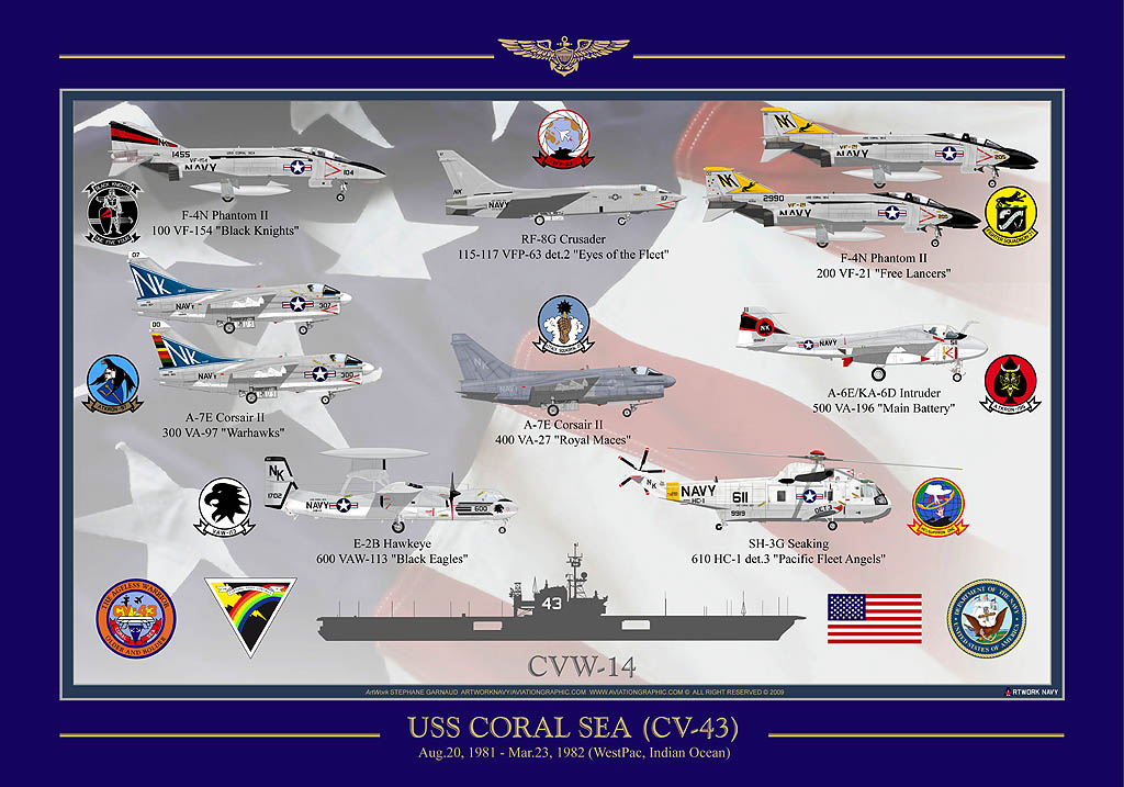 | August 20, 1981 – March 23, 1982 Carrier Air Wing 14, CVW-14 ("NK") WestPac, Indian Ocean |