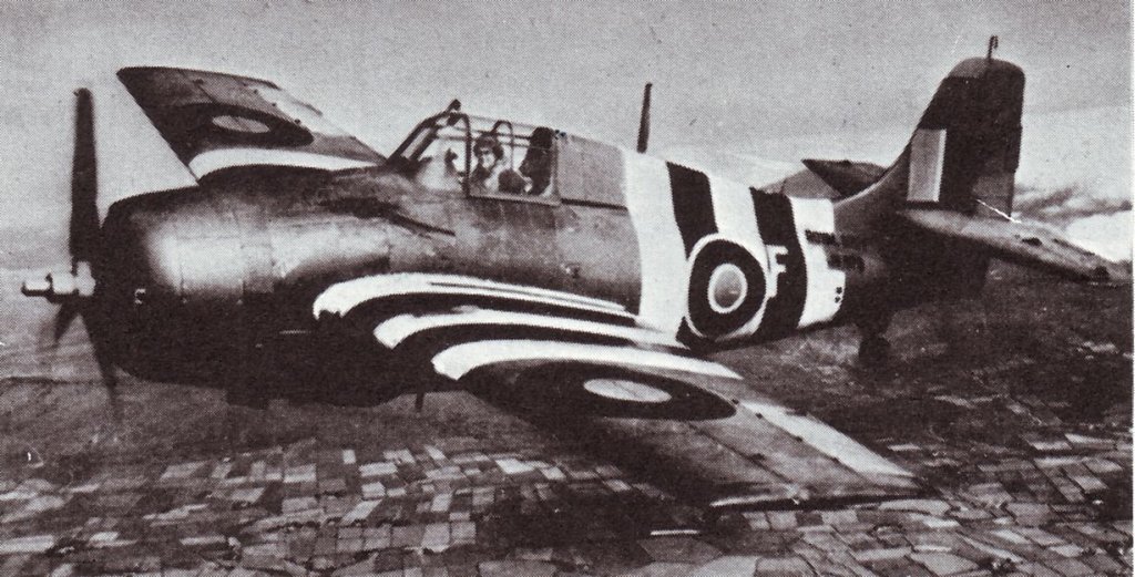 139k | A Fleet Air Arm Grumman Wildcat Mk.V of No.896 Squadron based aboard the escort carrier HMS Pursuer (D73). Fleet Air Arm Museum photo. Image scanned from British Naval Aircraft since 1912, by Owen Thetford. |