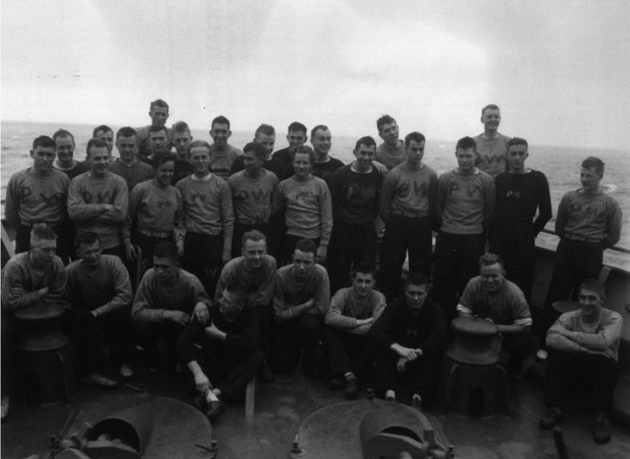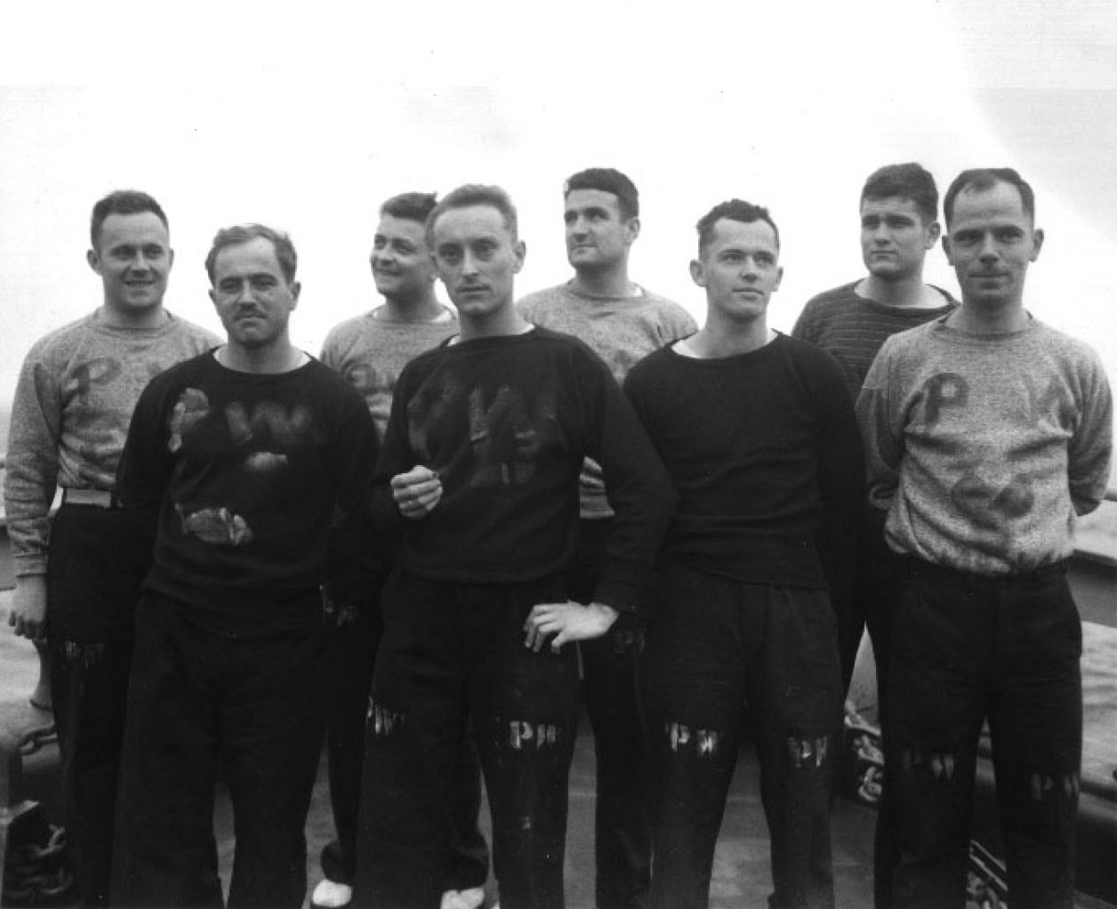 119k | Survivors of USS Block Island (CVE-21). Official U.S. Navy (USN) Photograph. |