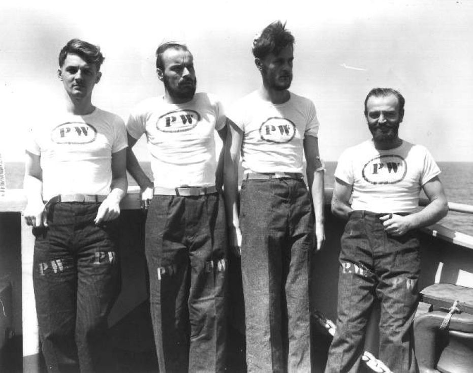 433k | Survivors of USS Block Island (CVE-21), Casablanca, Morocco. Executive officer, Commander Delos Edwin Wait. Photographed by L.F. Cirzan (USS Bogue (CVE-9)), 1 June 1944. Official U.S. Navy Photograph, now in the collections of the National Archives and Records Administration (NARA), # 80-G-266505. |