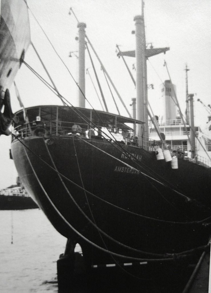 97k | Ex-HMS Queen as Roebiah (Dutch flag). Bremen, Germany, August 1964. | Photo by Gerhard Mueller-Debus | |