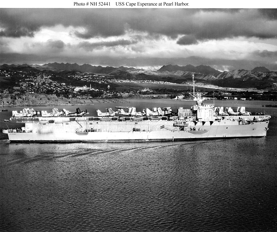 145k | USS Cape Esperance (CVE-88) underway, circa 1945. USN photo. |