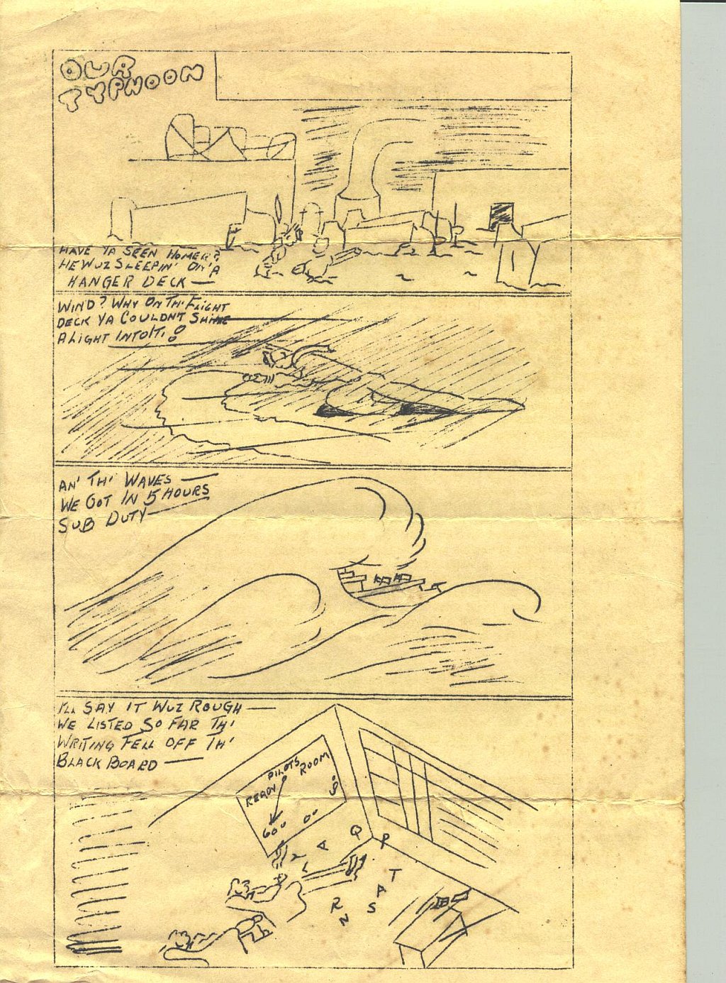419k | Typhoon, September 1945. Collection of LT J.W. Glock, who served as LSO aboard Makin Island, 1944–1945. |