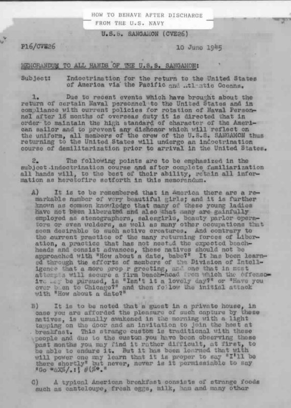 95k | "How to behave after discharge from the U.S. Navy" (Page 1). (Larger version, 56Kb) | ||