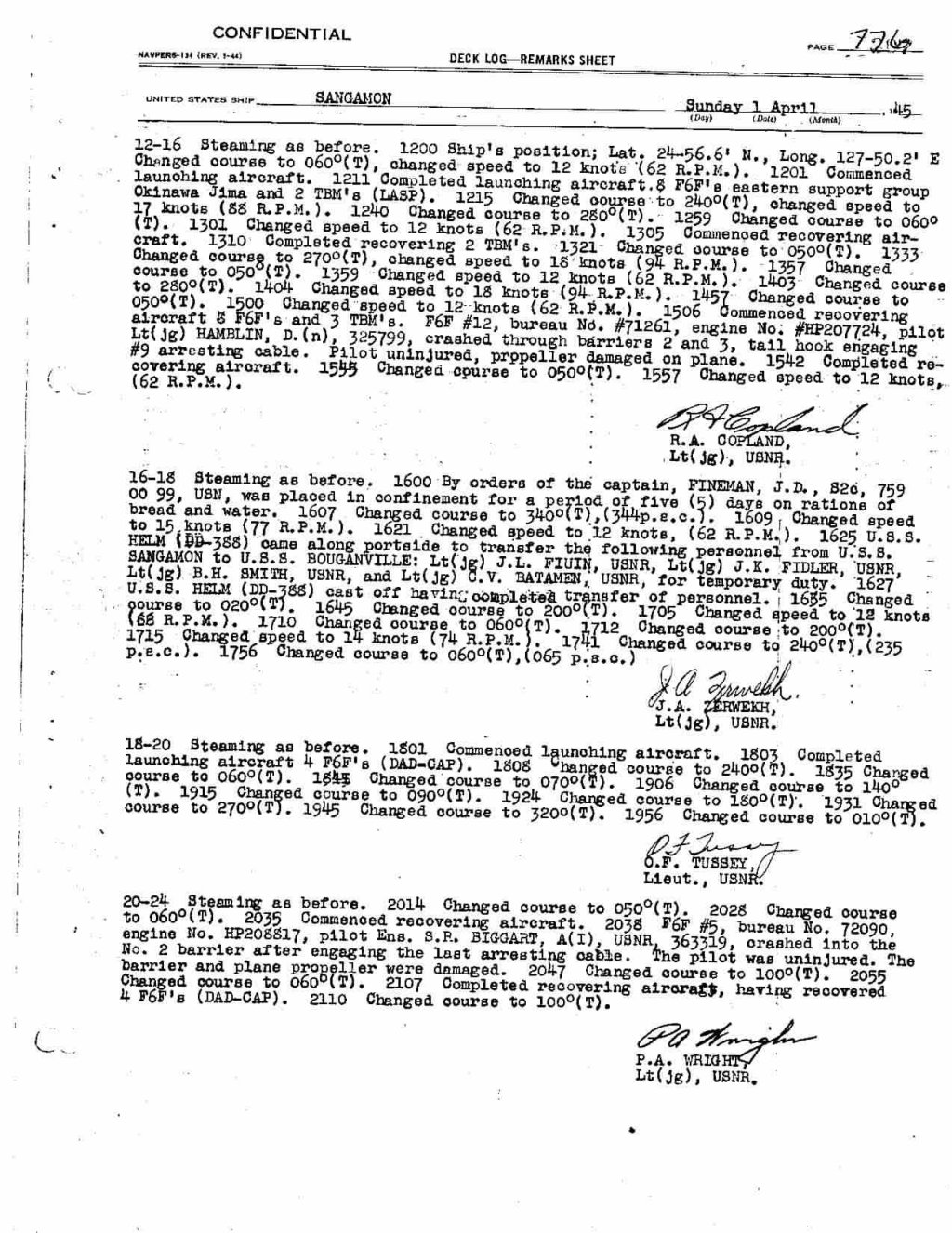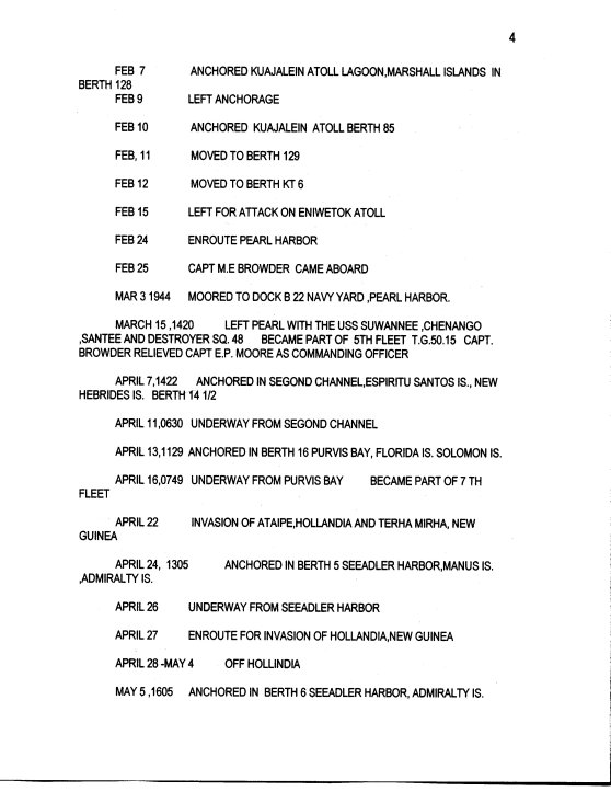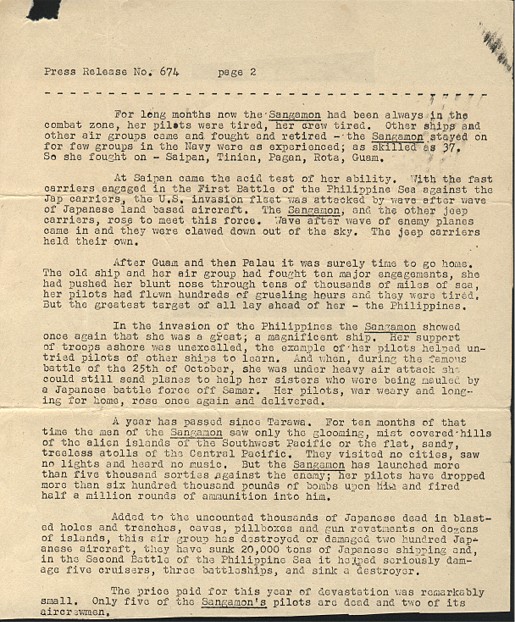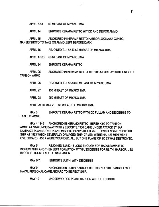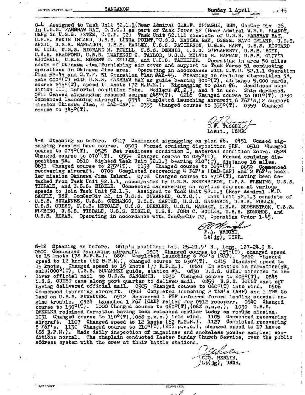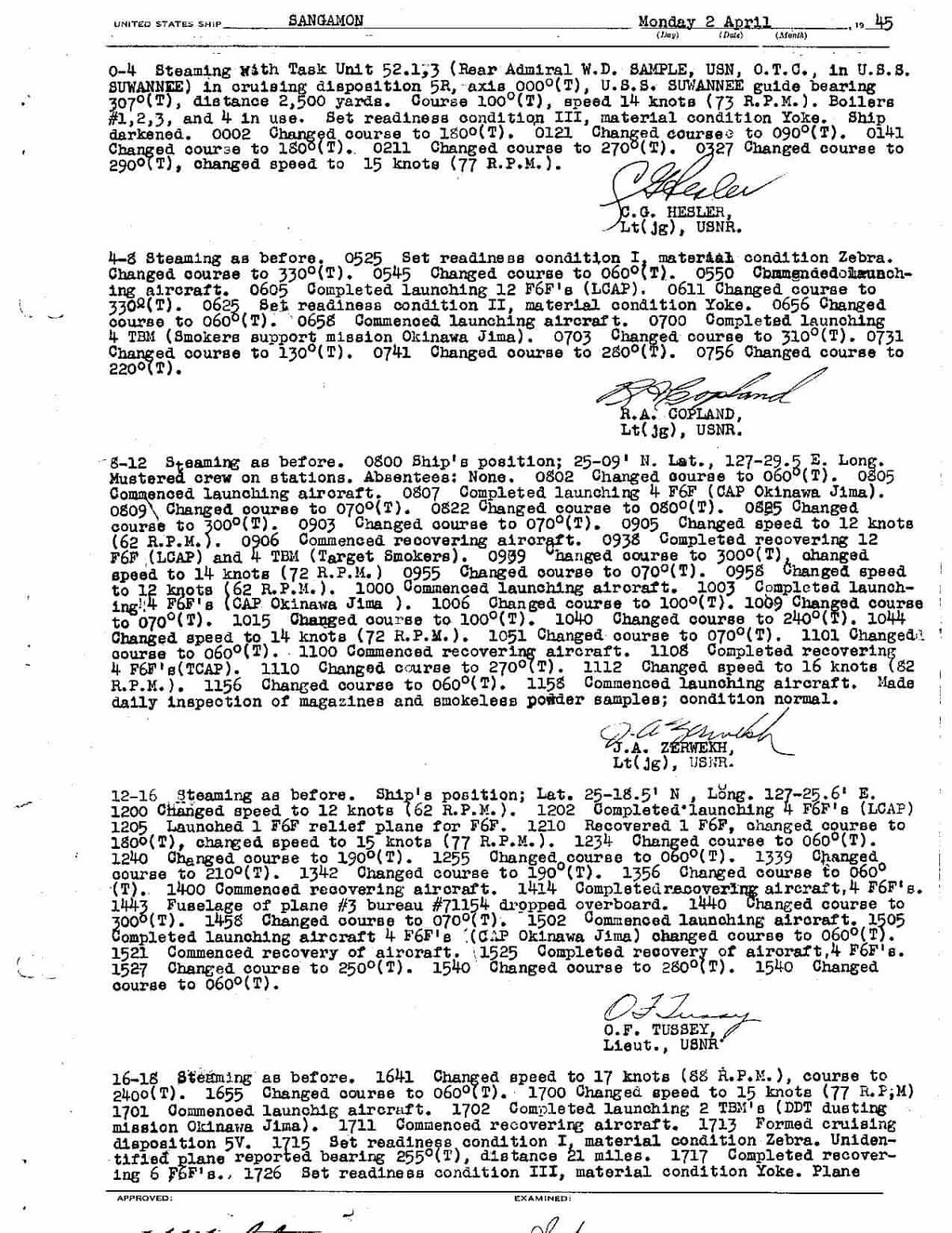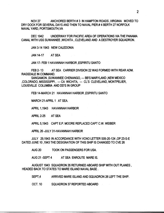 Abbreviated Log of the USS Sangamon (ACV-26/CVE-26) taken directly from