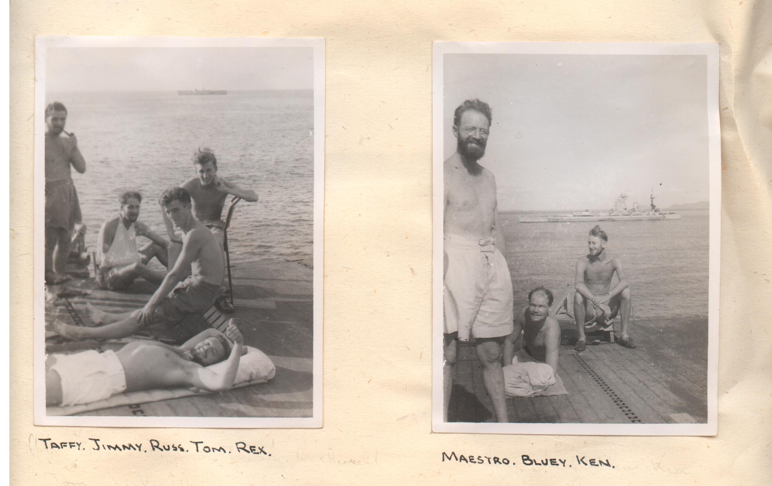 ![]() 159K 220K NS-03-cve8-m06 On deck, HMS Hunter, 1945 |