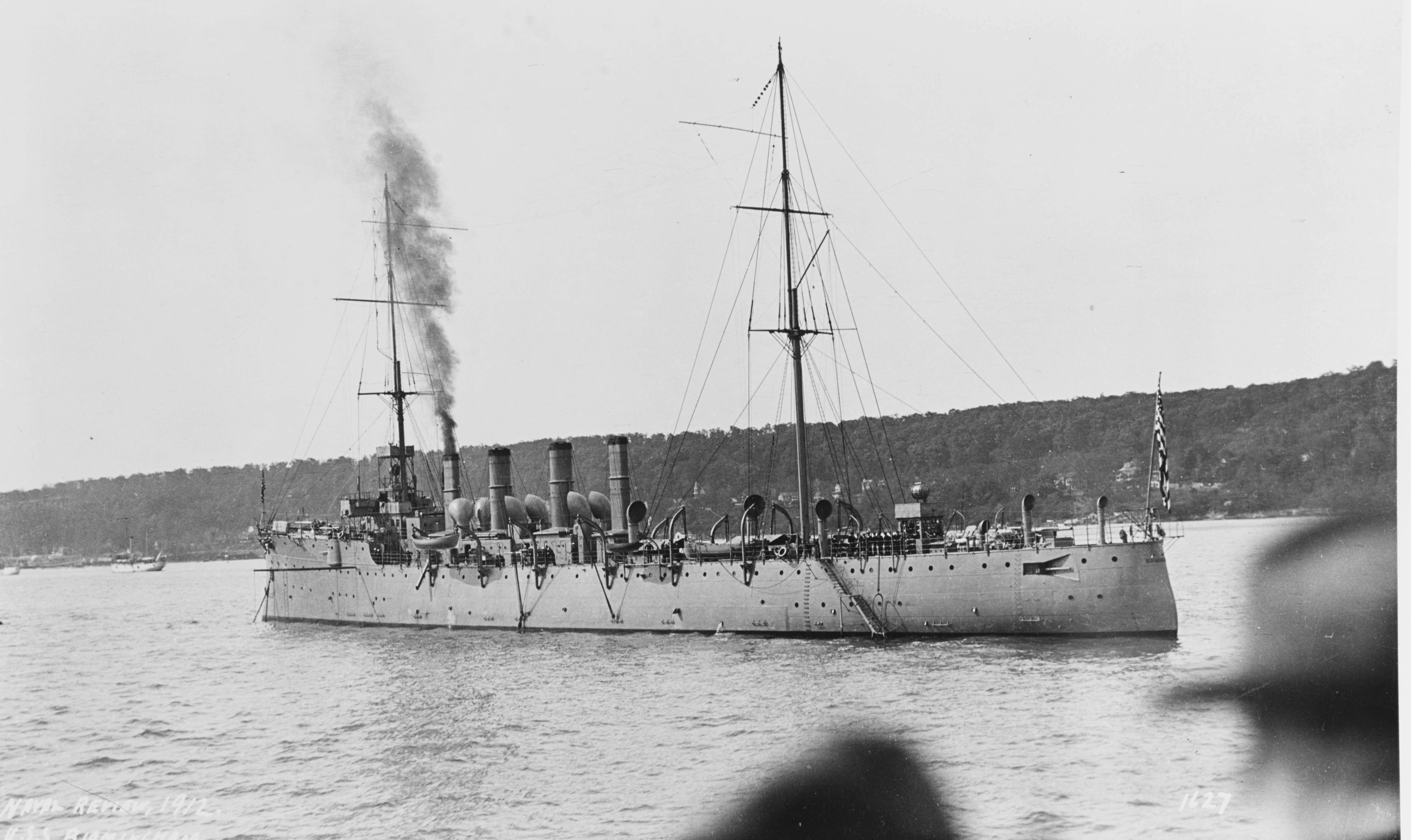 Birmingham (CS-2) underway in 11 March 1908, possibly during trials. Historic New England Nathaniel L. Stebbins Collection, Photo No. PC047.02.5940.18505 |