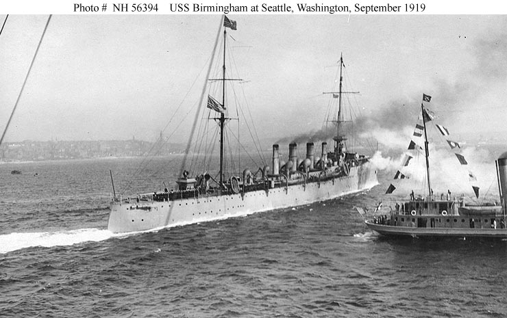 Birmingham (CS-2) At Seattle, Washington, in September 1919. U.S. Naval Historical Center Photograph #NH 56394. |