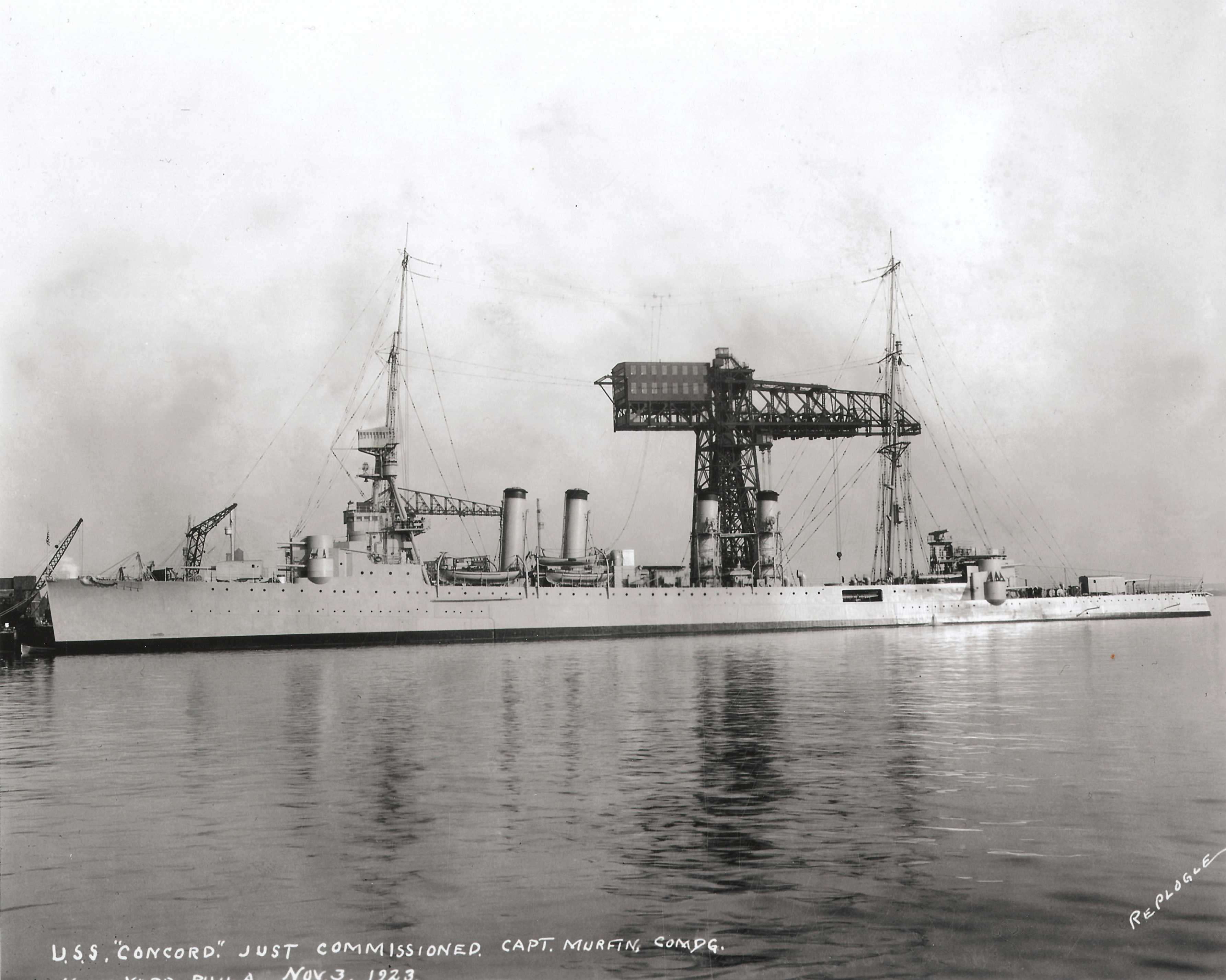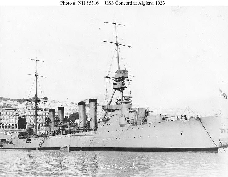 Concord (CL 10) anchored at Algiers, Algeria, circa late 1923. U.S. Naval Historical Center Photograph #NH 55316. |