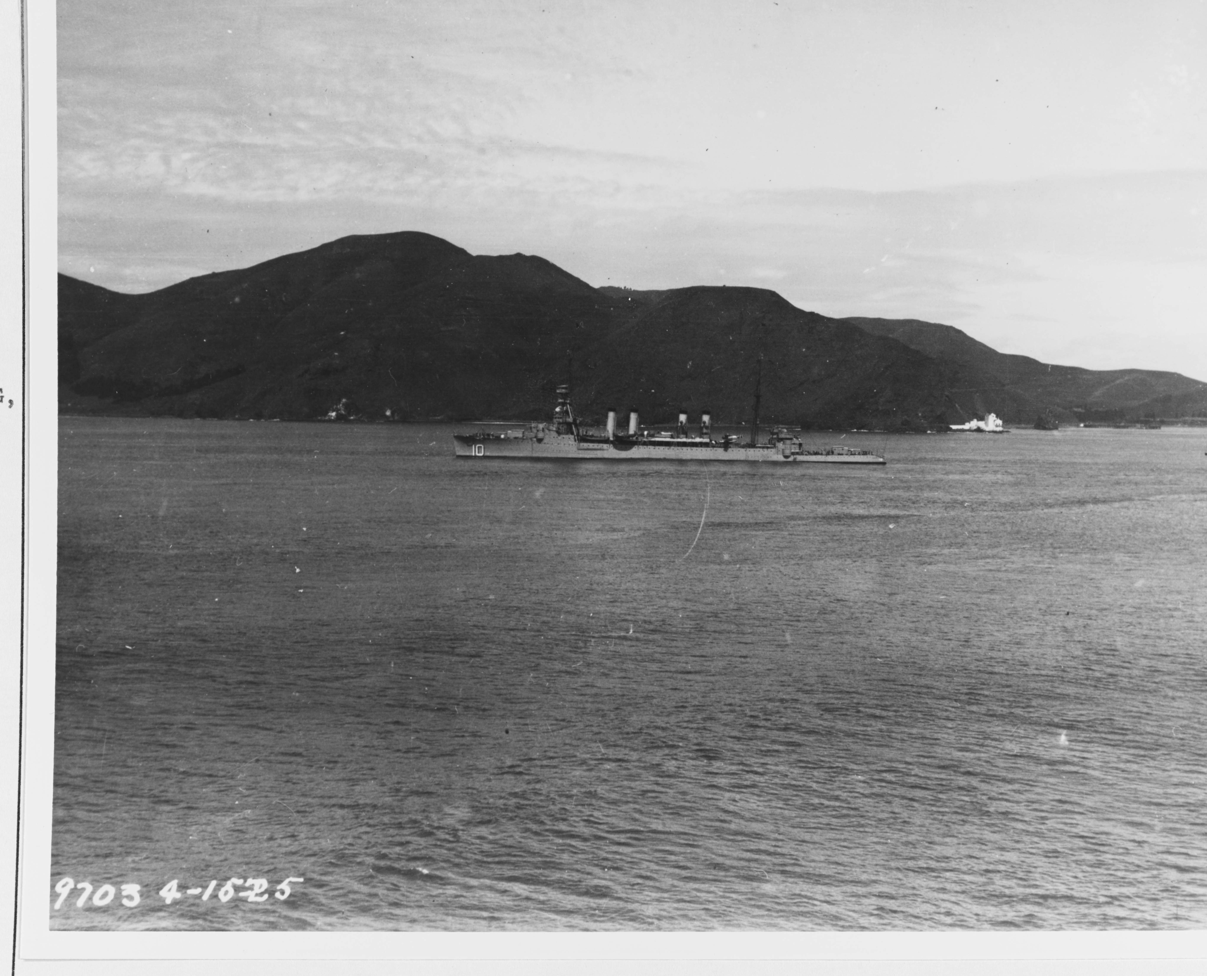 3.36k | Concord (CL 10) passing out to sea through The Golden Gate Bridge with the Pacific Fleet, 15 April 1925. Note bow numbers, rare in cruisers at this time. | NHCC photo NH 72398 via history.navy.mil | |