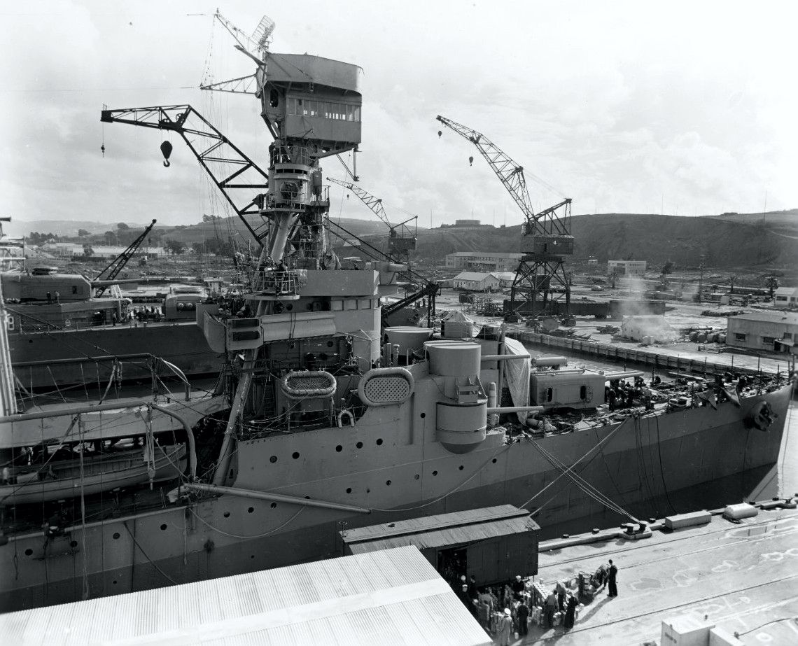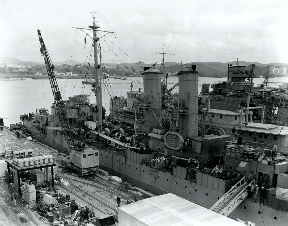 Concord (CL 10) at the Mare Island Navy Yard, 7 February 1942. U.S. National Archives, Photo #19-N-28436 |