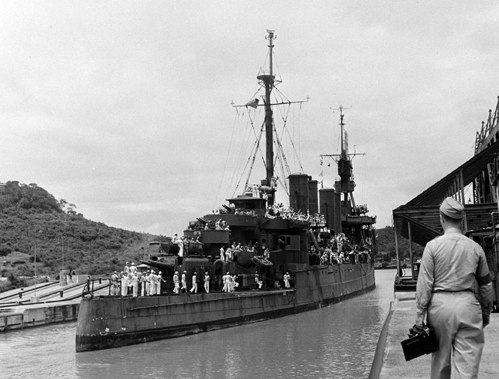 1.28k | Concord (CL 10) leaving Miraflores Locks and entering | Local ID: 185-G-960 National Archives Identifier: 100996500 USN photo courtesy of catalog.archives.gov |