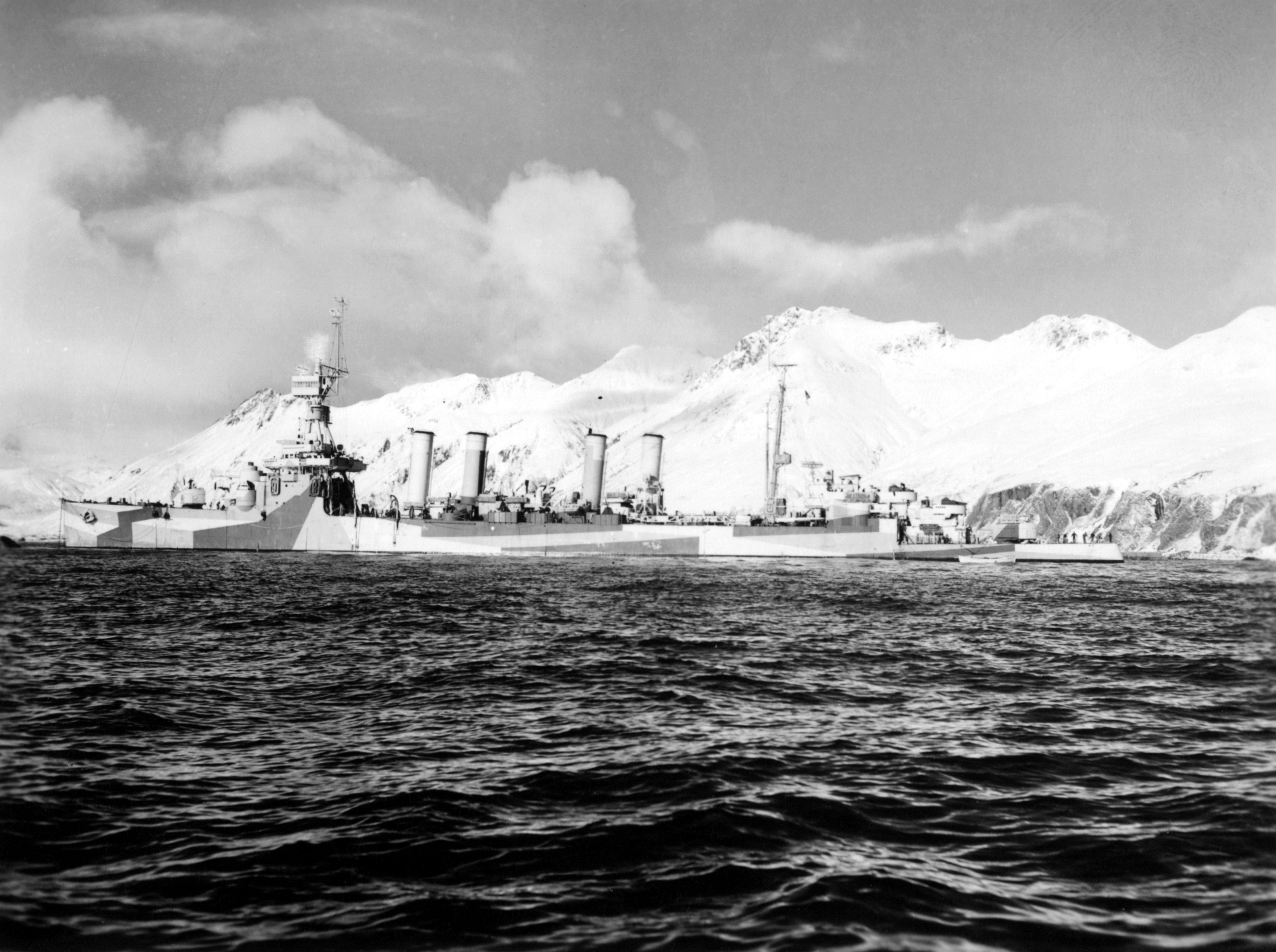 1m | Portside view of Concord in Adak, Alaska circa March 1944 - August 1945 in Measure 33, Design 2F camouflage. From the collection of BM1 Harry Roy Olson. | Jenni Olson | |