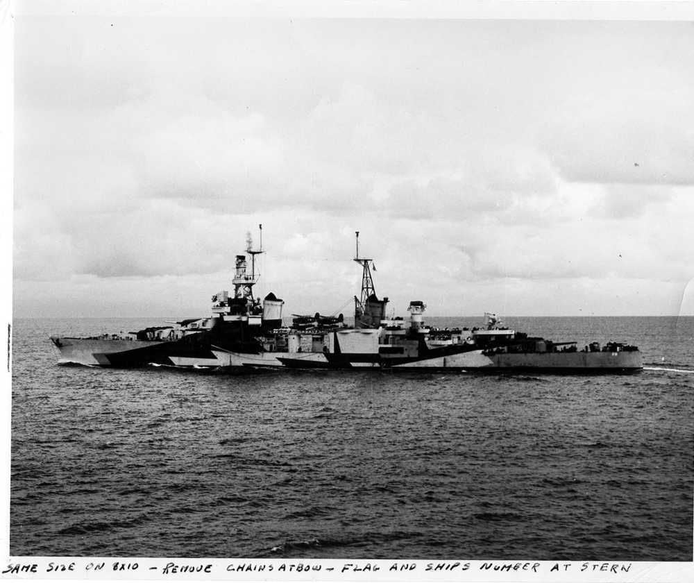 Starboard side view while underway circa 1940 - 1941, taken from the USS Wasp (CV 7). Naval History and Heritage Command Photo # NH 92972 |