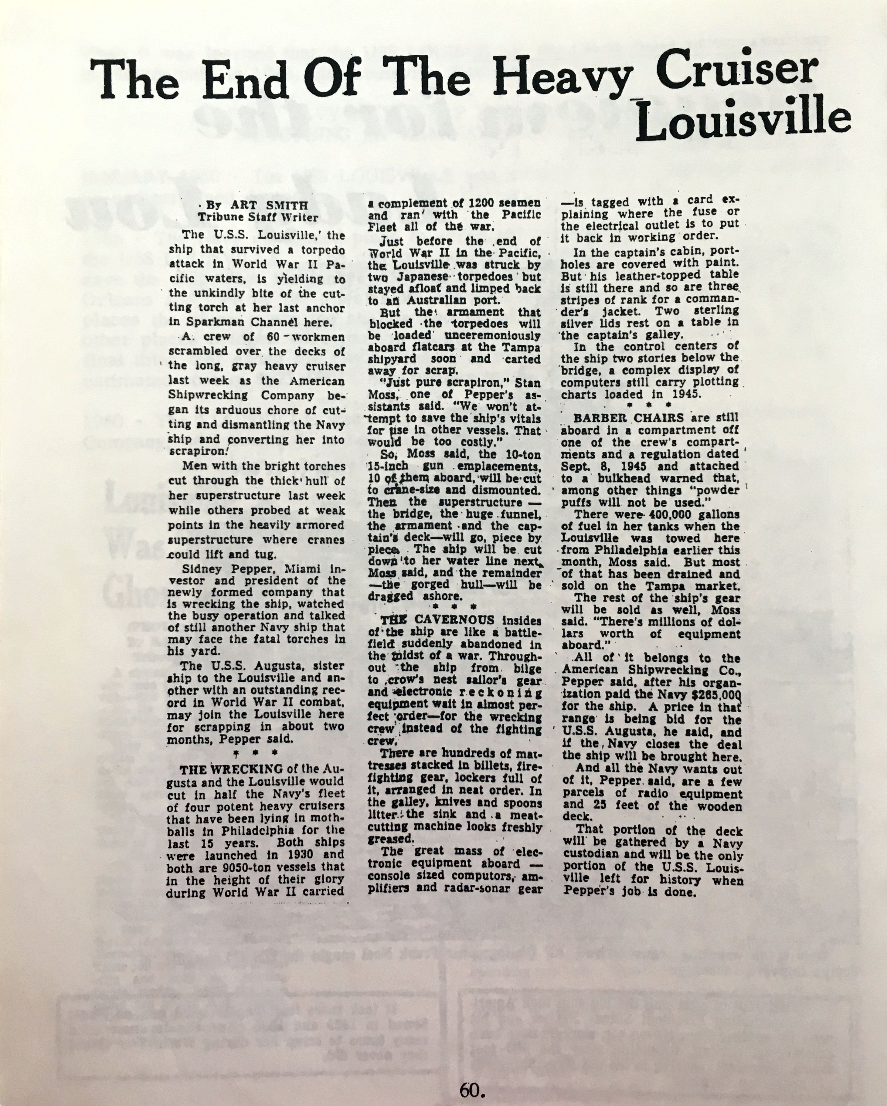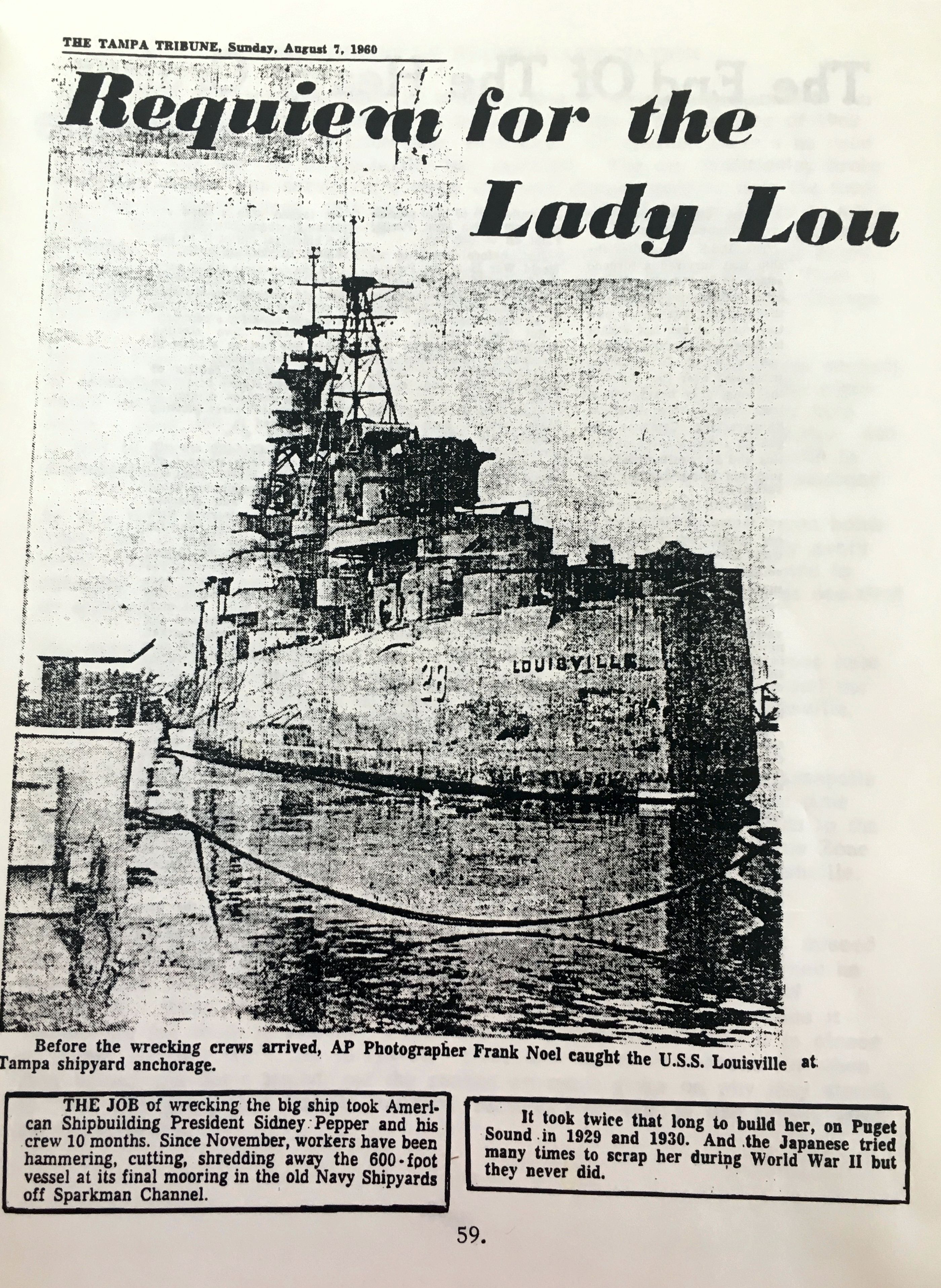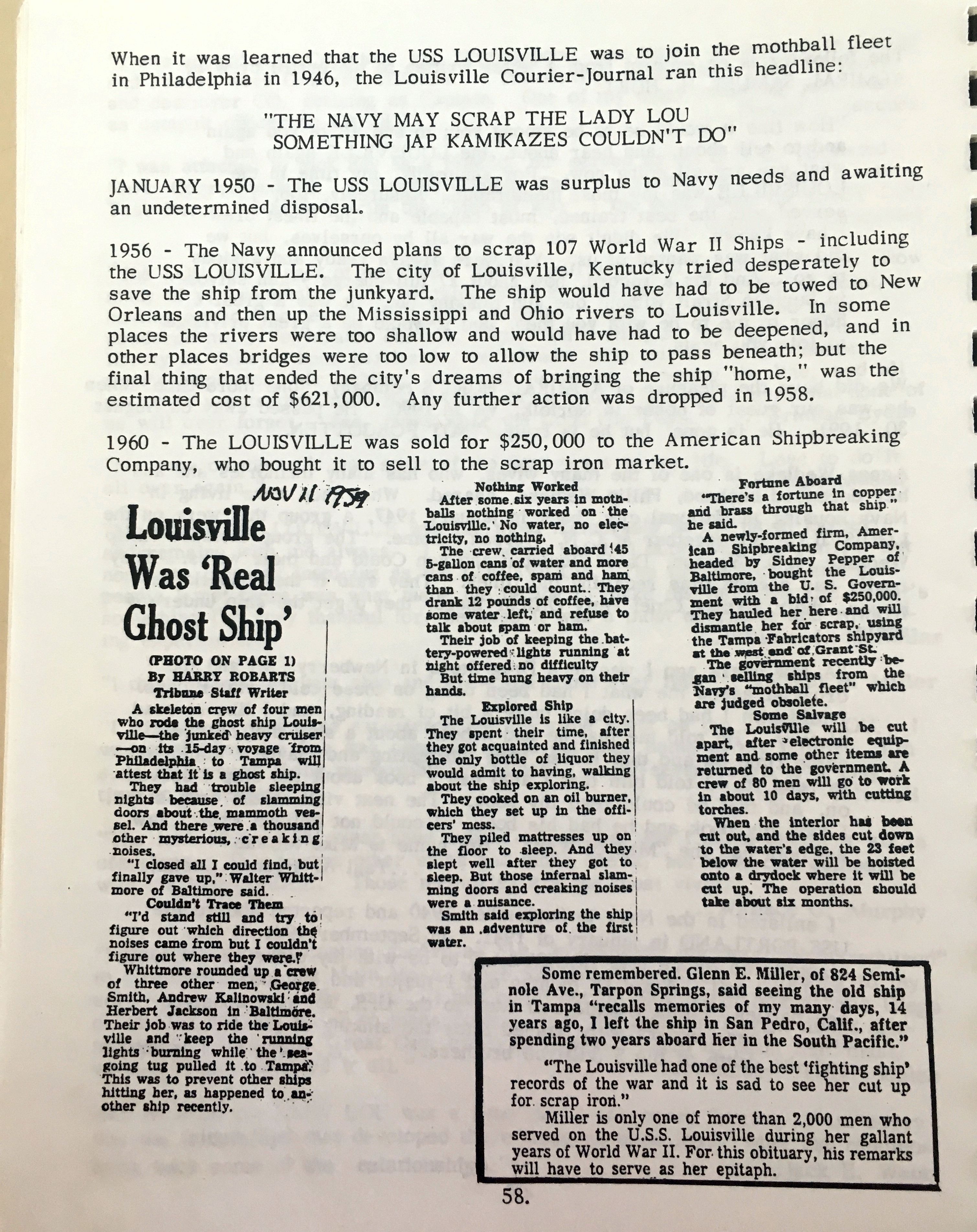 1.79m | Interesting articles from a Louisville reunion documenting the disposal of the ship. From the collection of Enrico Trotta. | Tony Trotta |