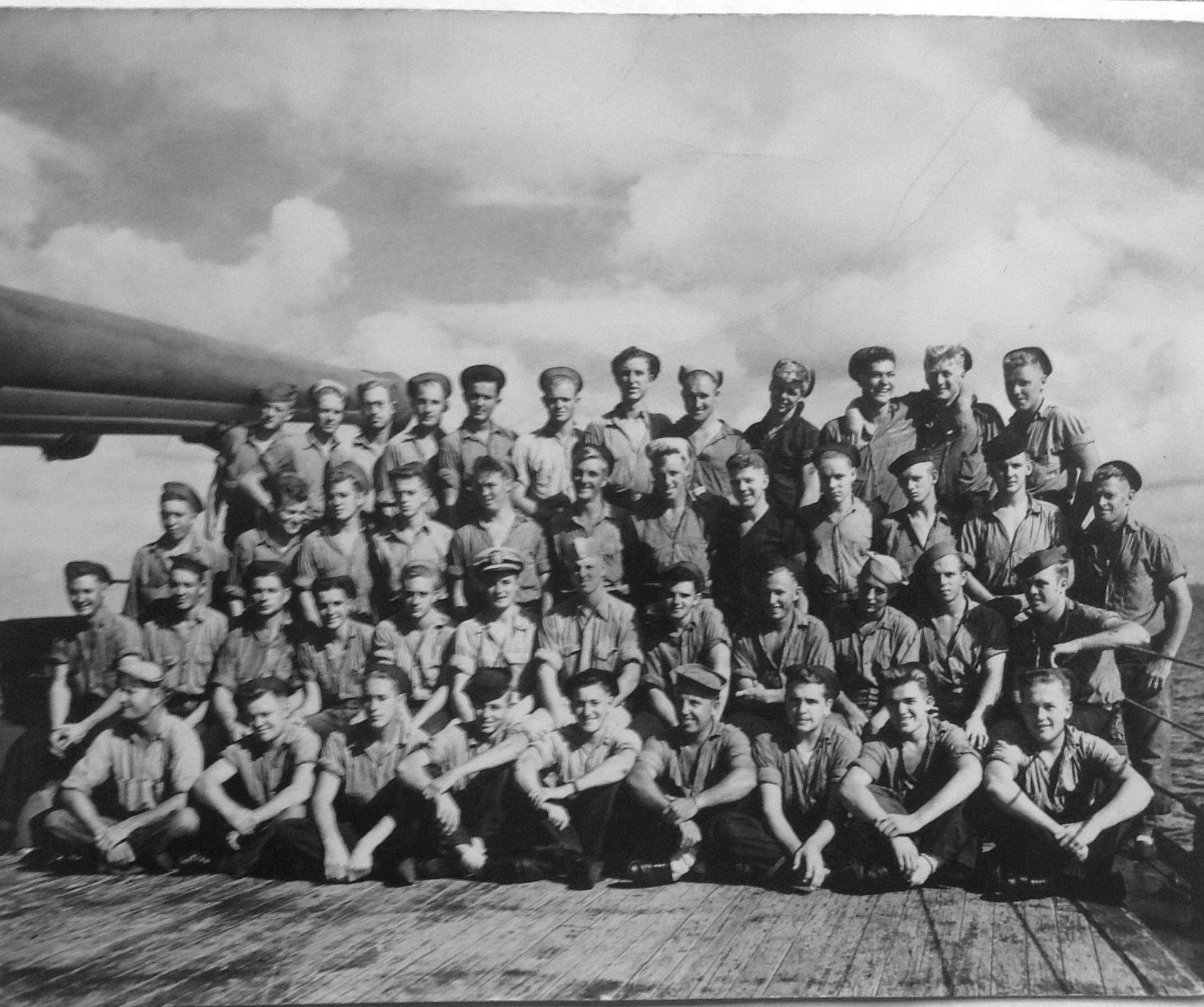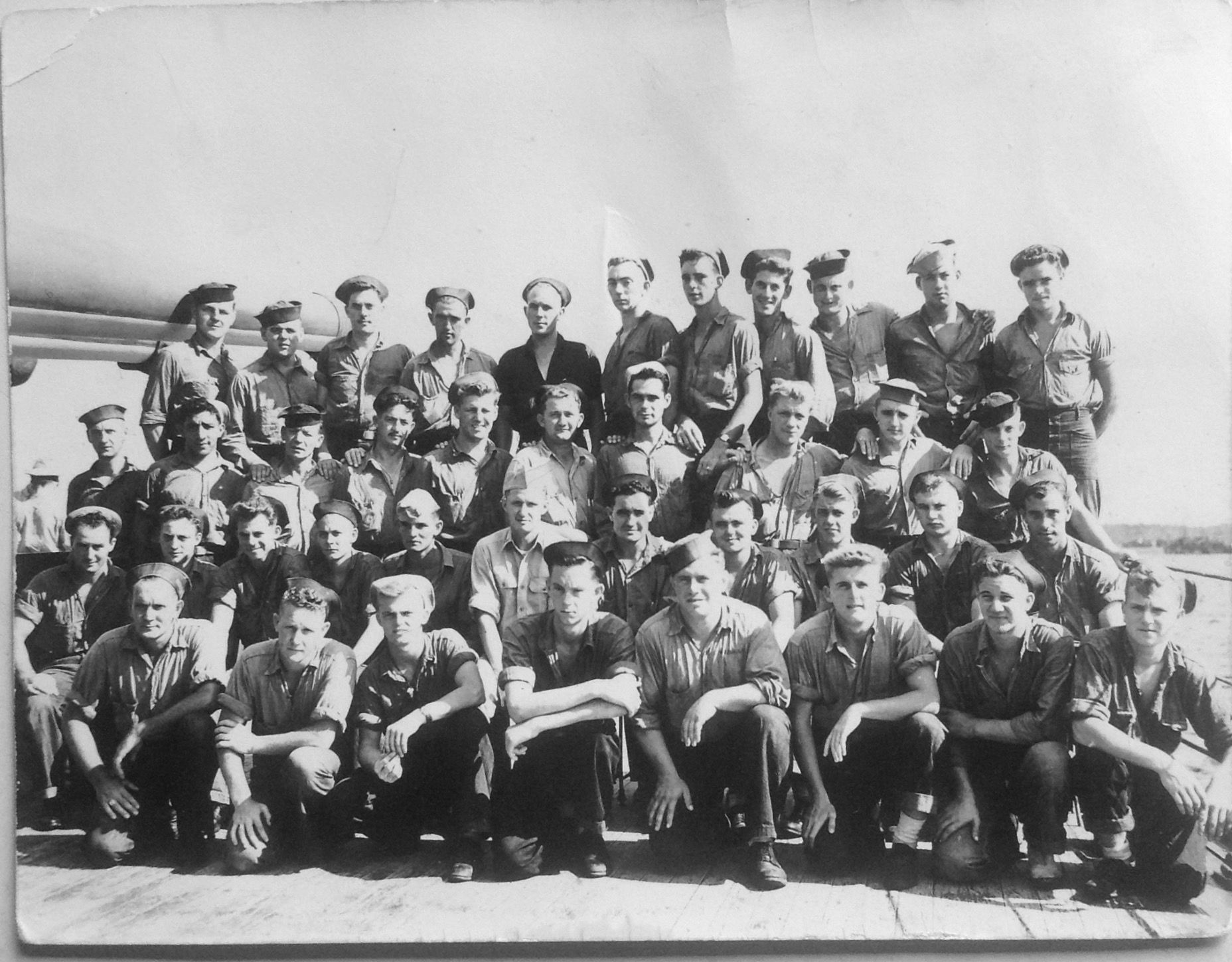 My late father, Ensign James H. Doyle Jr., took this of his crew on the "Lucky Lou" in 1945. |
