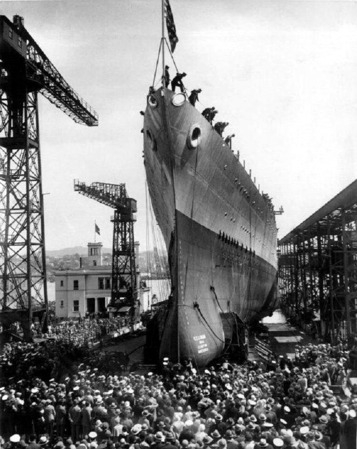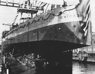 101k | USS Chicago (CL 29) being prepared for launching,
