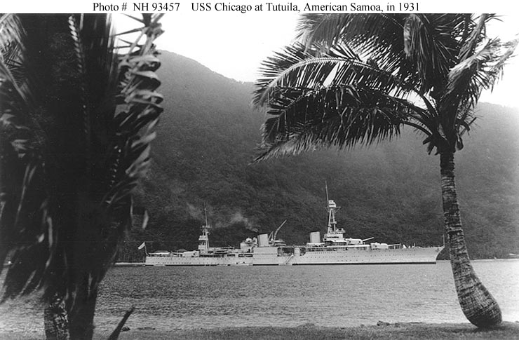 USS Chicago (CL 29) At Tutuila, American Samoa, during her shakedown cruise, 1931. Courtesy of Wiley H. Smith, 1981. U.S. Naval Historical Center Photograph #NH 93457. |
