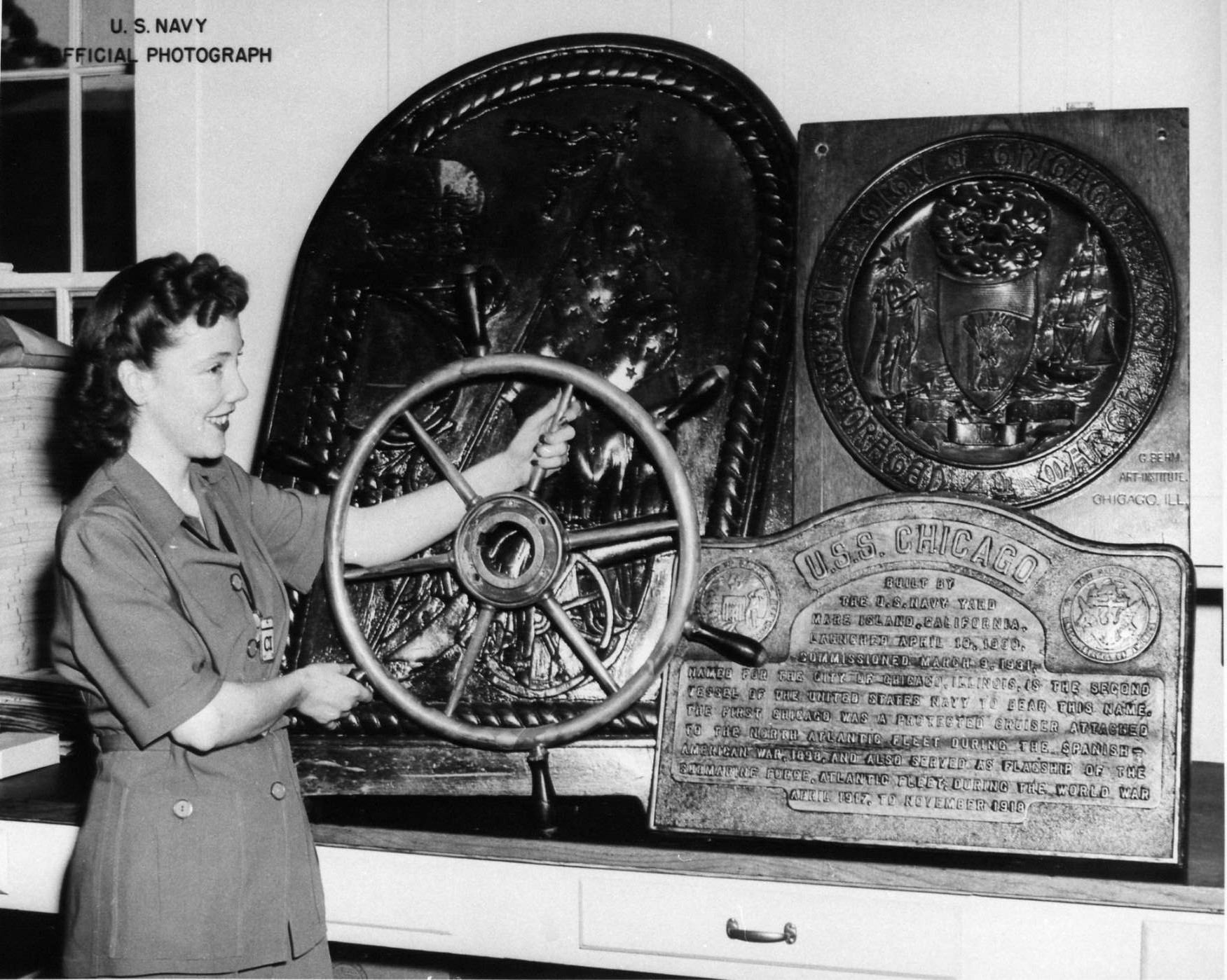 Photo of the artifacts removed from Chicago prior to her departure for war. U.S. Navy Photo #5851-43. |