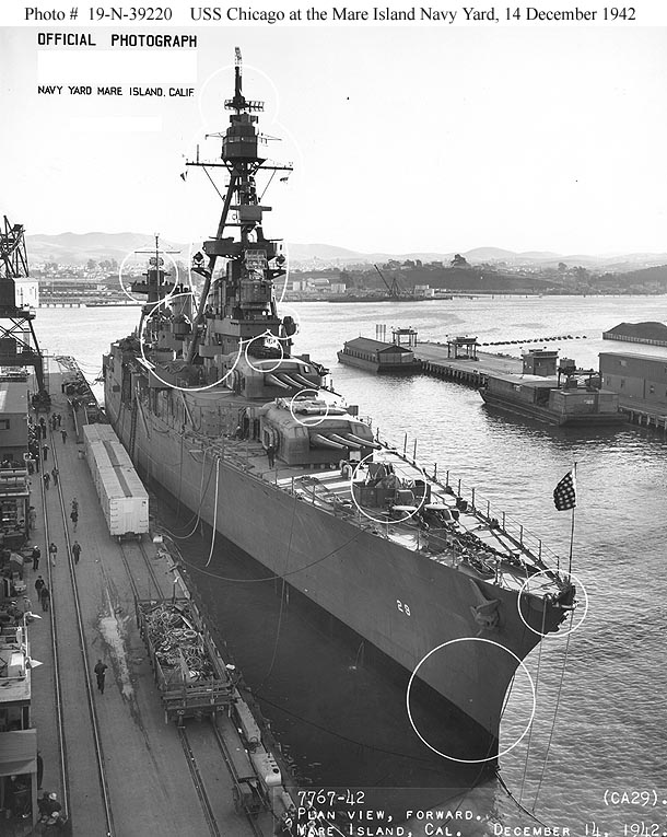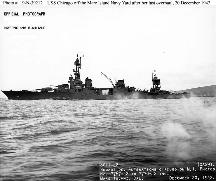 USS Chicago (CA 29) off Mare Island Navy Yard on 20 Dec 1942. U.S. Navy photo #8010-42. |