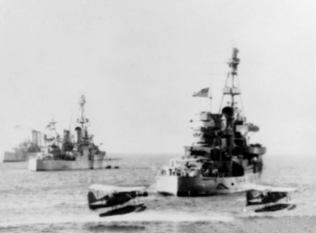 67k | USS Salt Lake City (CA 25) and USS Chicago (CA 29) underway in May, 1942 in the Coral Sea-Solomon Islands area Museums Victoria Collections, Photo #MM 1112319 |