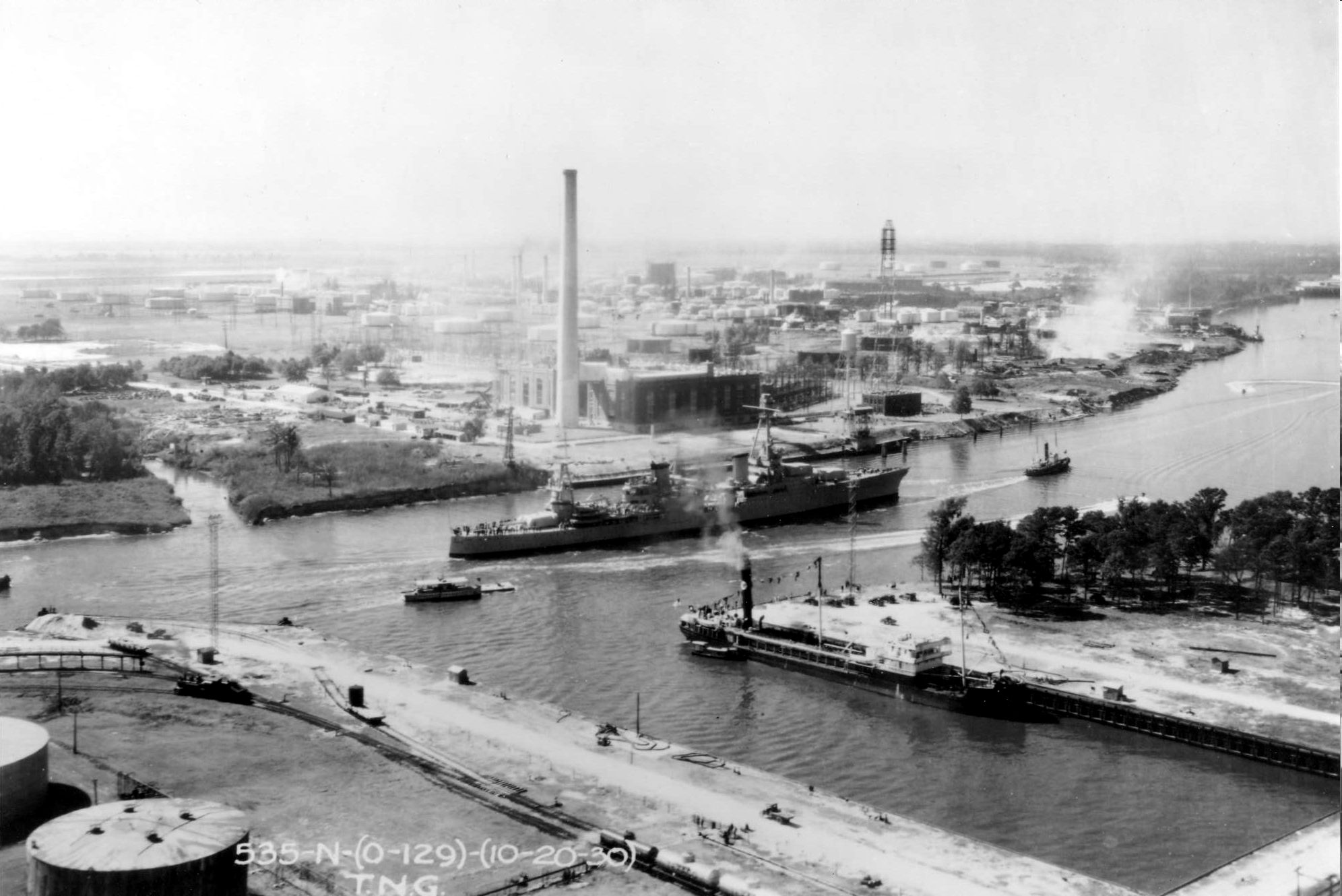 288k | USS Houston (CA 30) in the Houston Ship Channel, 20 October 1930, on her first visit to her namesake city. From the Otto Schwarz Collection. | Don Kehn, Jr. | |