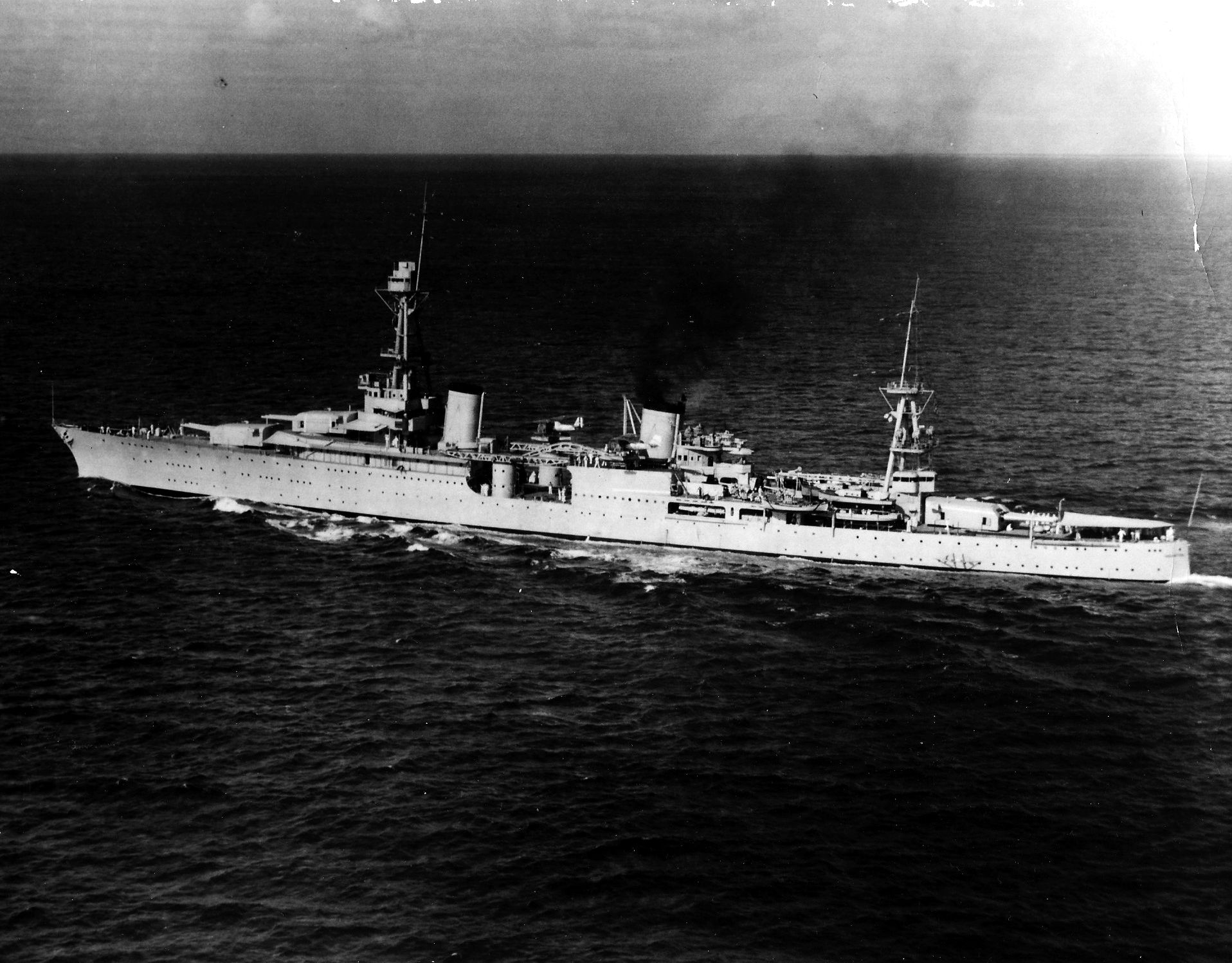317k | Photo caption: "(Ny-14) AT SEA WITH FLEET-----AFTER THE HOUSTON "WENT DOWN "---This photo of the Houston (CA 30), cruiser that carried President Roosevelt to the Caribbean war games, was released today by the Navy Department. Later, Admiral William D. Leahy disclosed that the Houston was theoretically sunk by an "enemy" submarine earlier in the game in the vicinity of the Virgin Islands. This photo was made from the Aircraft Carrier Lexington. (c31720) APWIREPHOTO SEE STORY" | Jonathan Eno | |