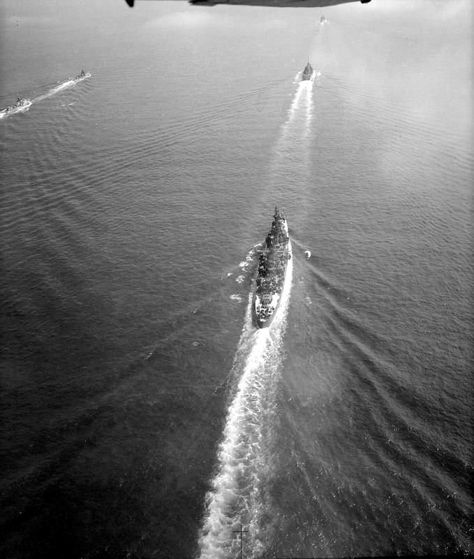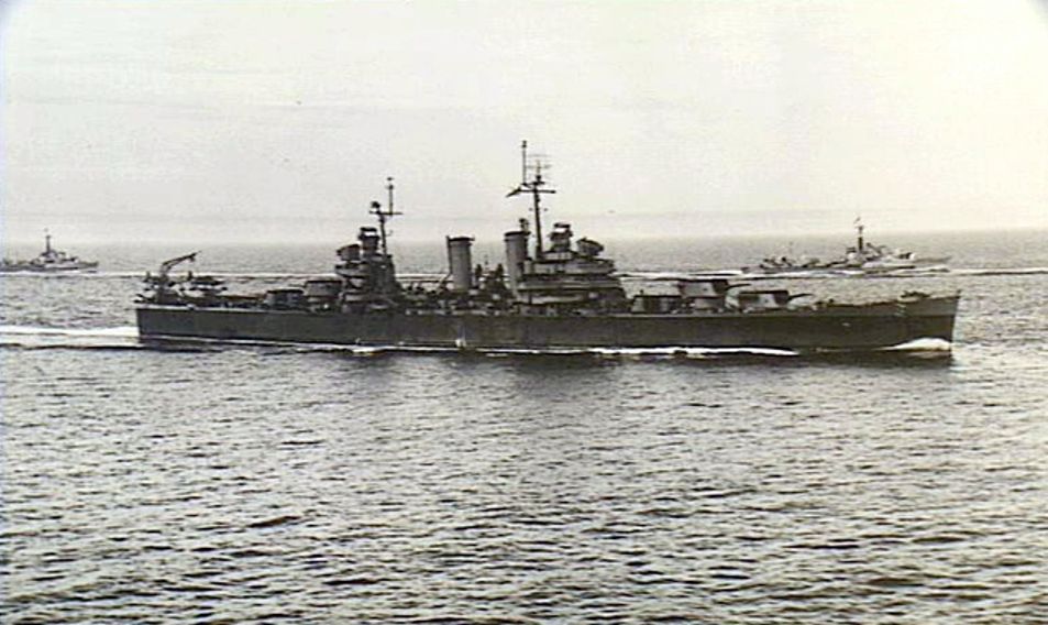 Followed by the USS Augusta (CA 31), the Philadelphia (CL 41) and other escorting vessels enter the Downs of the east coast of Kent, England on 14 July 1945. The Augusta is carrying President Harry S. Truman, who will be attending the 'Big 3' Meeting at Potsdam, occupied Germany. Imperial War Museum Admiralty Official Collection, Photo #A29645. ?© IWM |