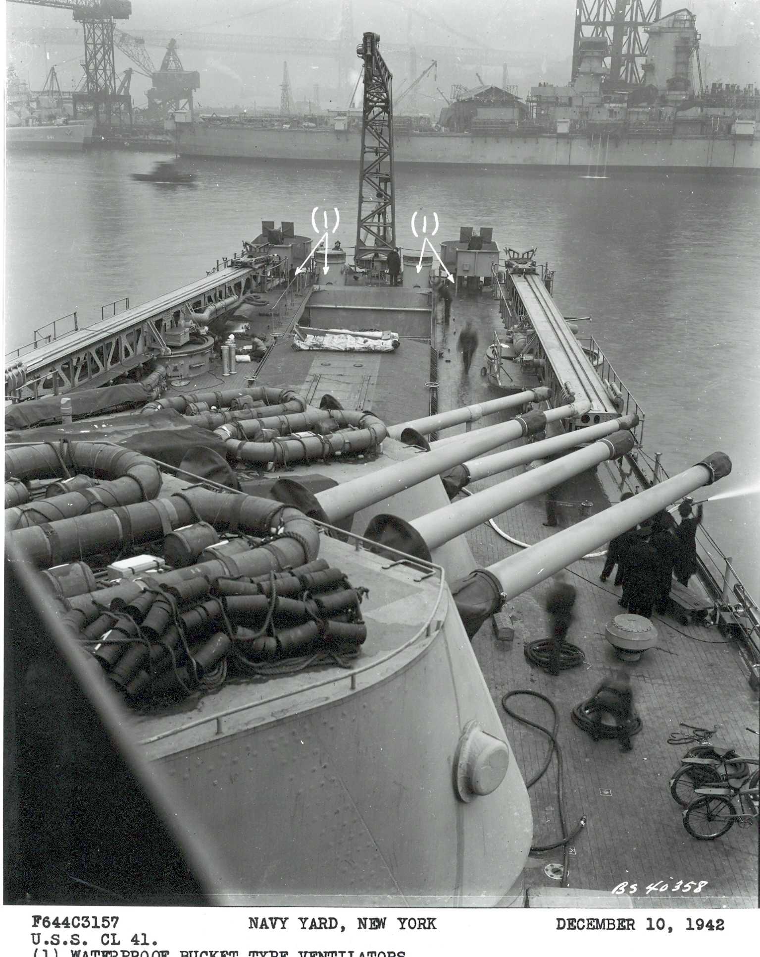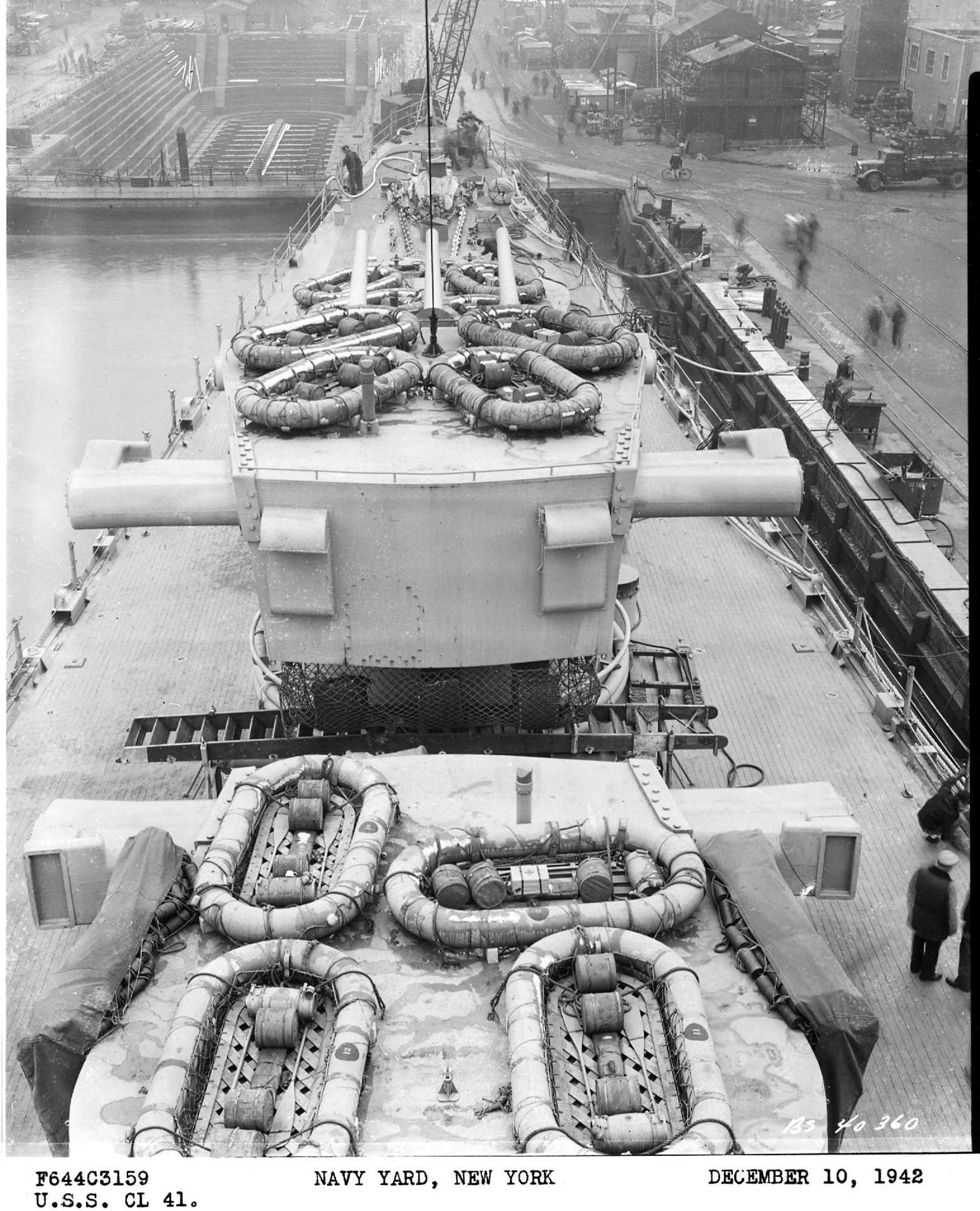 Looking aft, New York Naval Shipyard, 19 December 1942. NYNS photo #F644C3157. |