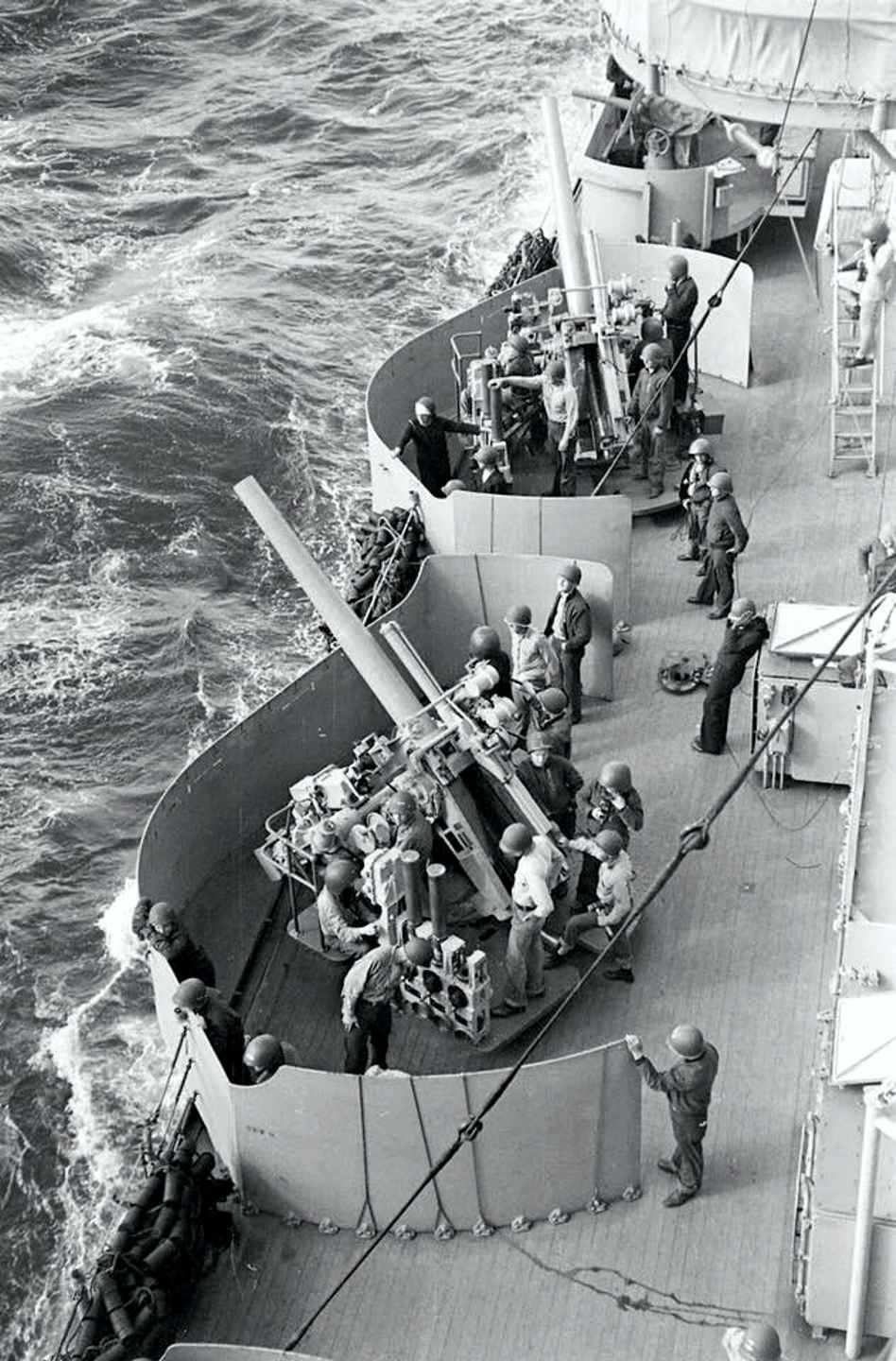 5?€¯/25 open mount secondary guns on board USS Philadelphia (CL 41). Photo was taken during Operation Torch off of Safi Morocco - November 1942. LIFE Magazine Archives - Eliot Elisofon Photographer, Shared by Peter DeForest |