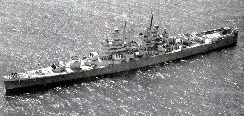 USS Montpelier (CL 57) Photographed by the Philadelphia Navy Yard, Pennsylvania, probably in the Delaware River or Delaware Bay on 12 December 1942. Note the seaplane floats on her catapults. Official U.S. Navy Photograph, from the Collections of the Naval Historical Center #NH 98084. |